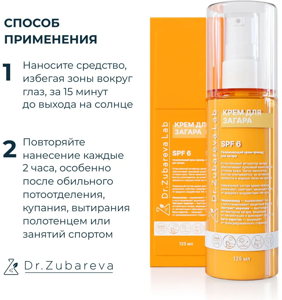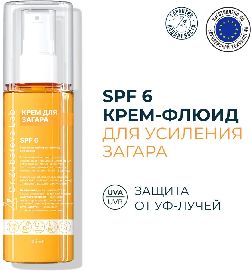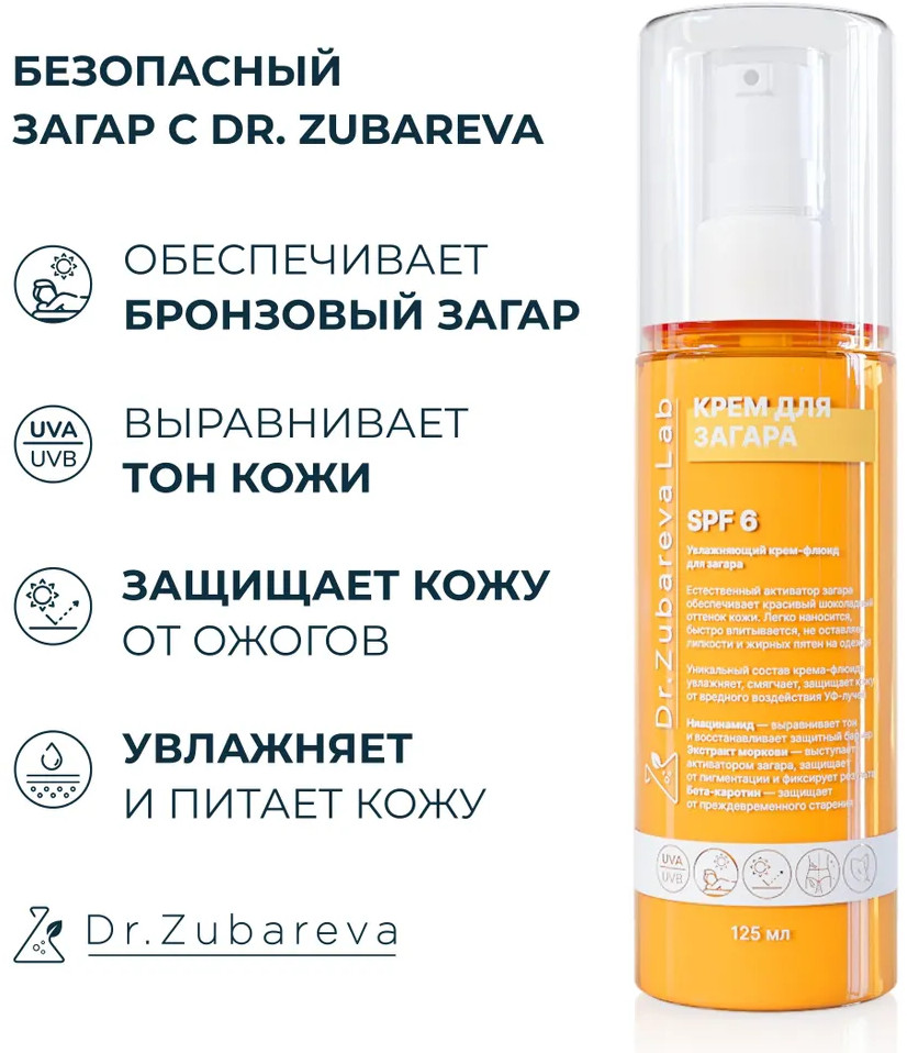 Dr.Zubareva Крем-флюид для загара увлажняющий SPF 6-43% +104