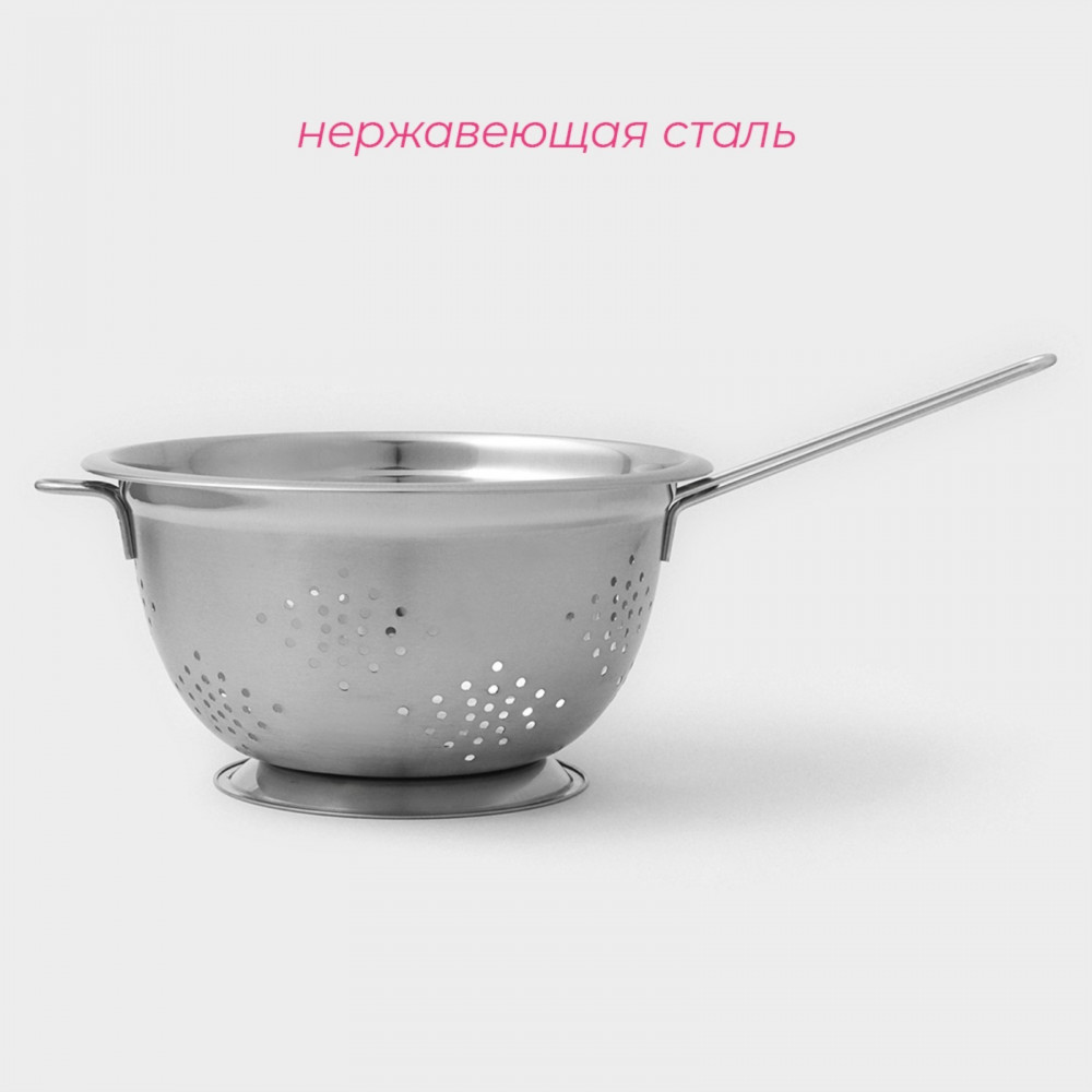 💳 Оплатить за товар можно при получении 🇰🇿 Есть бесплатная доставка по Казахстану от 1 дня 🎁 Копите бонусы с каждой покупки Дуршлаг — незаменимый помощник на кухне, имеет вид кастрюли с отверстиями. Дуршлаг изготовлен из качественной нержавеющей стали, имеет удобные ручки разной длины. Такую посуду удобно использовать и легко мыть. В основном он применяется для: |
