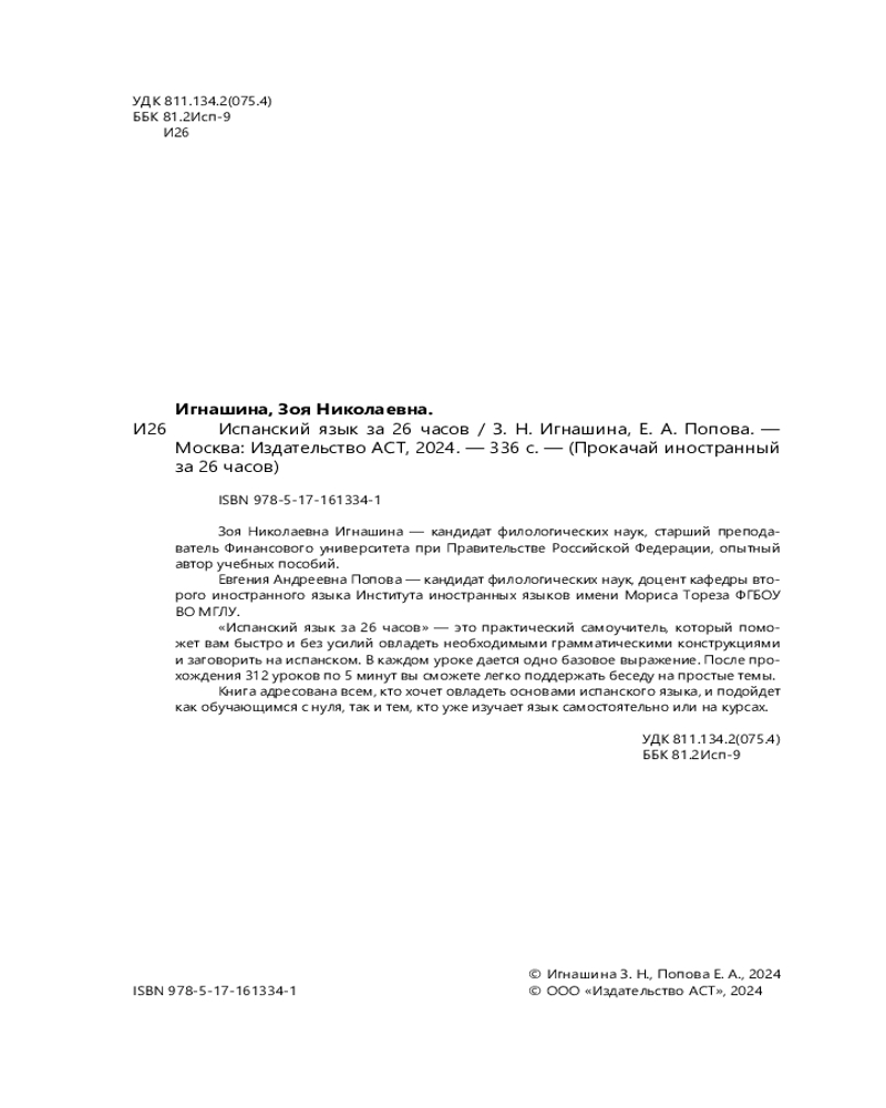 Испанский язык за 26 часовЗоя Николаевна Игнашина, Евгения Андреевна Попова +127