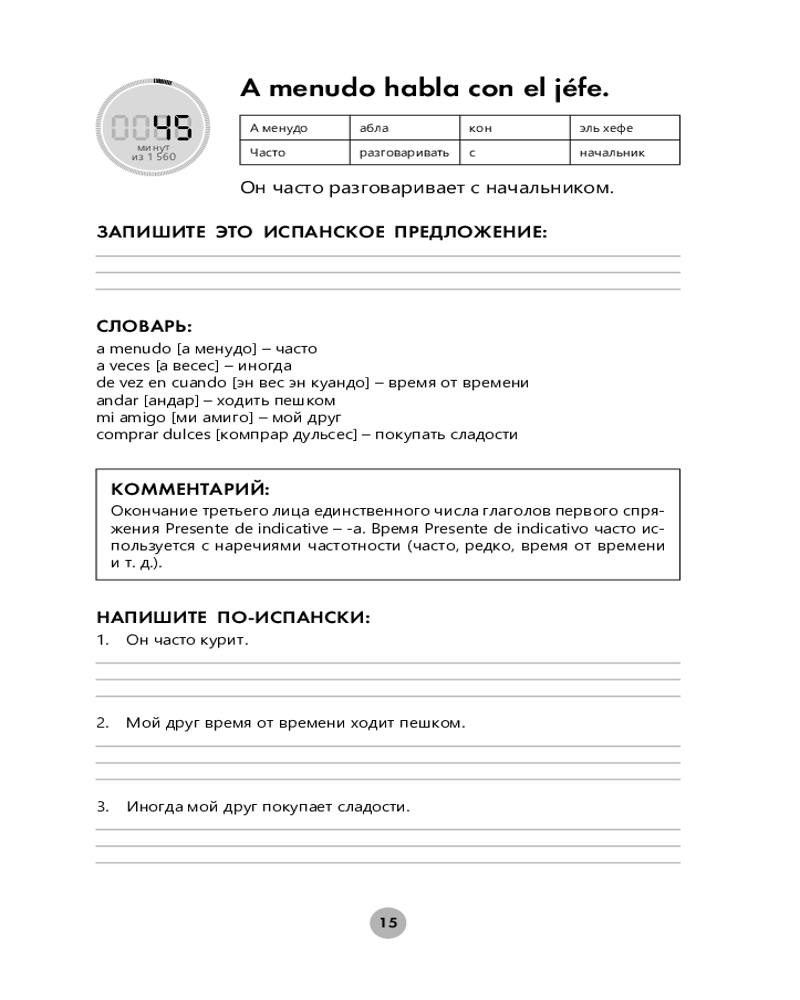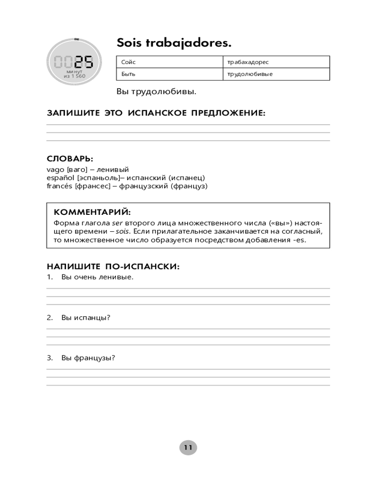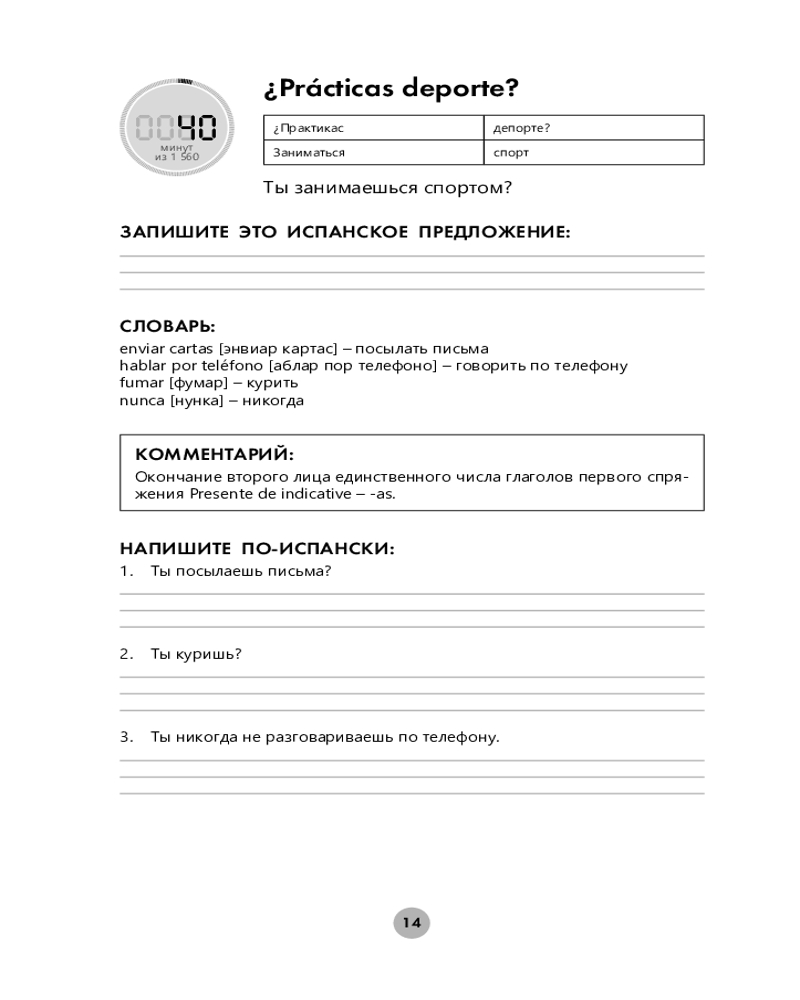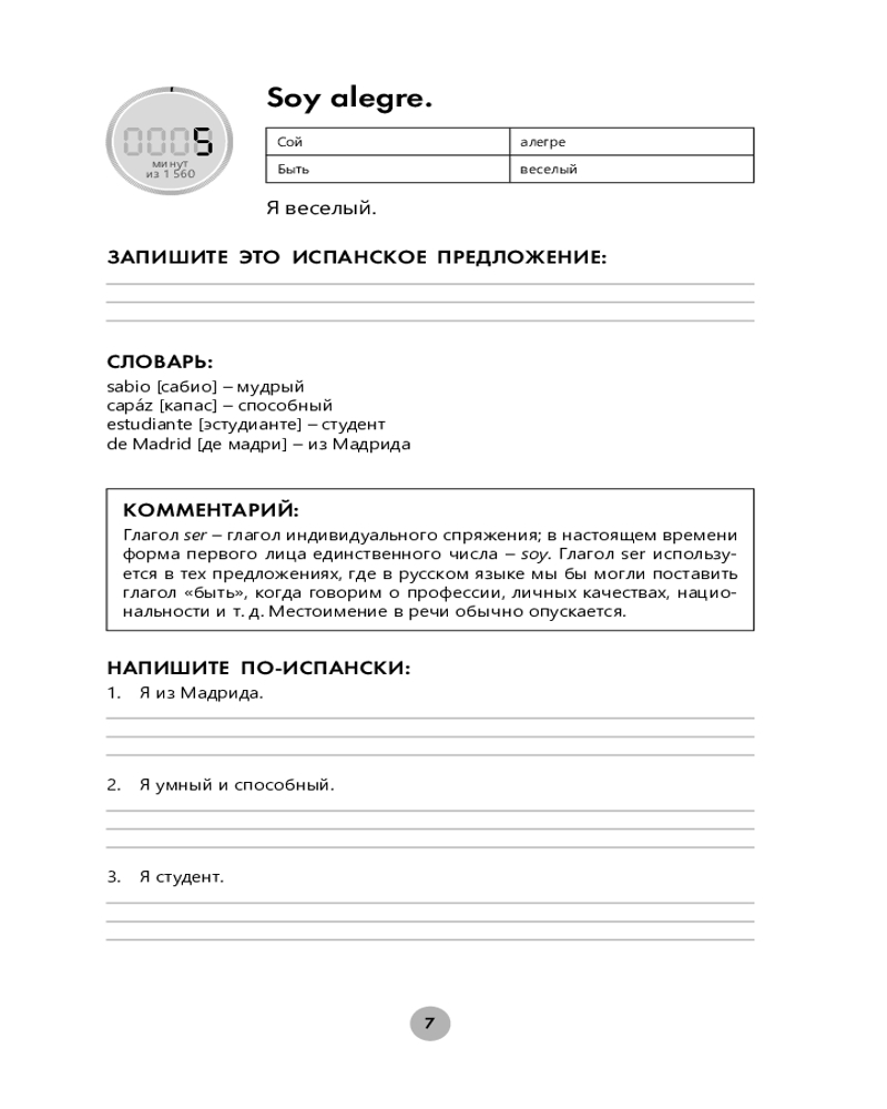 💳 Оплатить за товар можно при получении 🇰🇿 Есть бесплатная доставка по Казахстану от 1 дня 🎁 Копите бонусы с каждой покупки Серия: Прокачай иностранный за 26 часов «Испанский язык за 26 часов» — это практический самоучитель, который поможет вам быстро и без усилий овладеть необходимыми грамматическими конструкциями и заговорить на испанском. В каждом уроке дается одно базовое выражение. После прохождения 312 уроков по 5 минут вы сможете легко поддержать беседу на простые темы. |