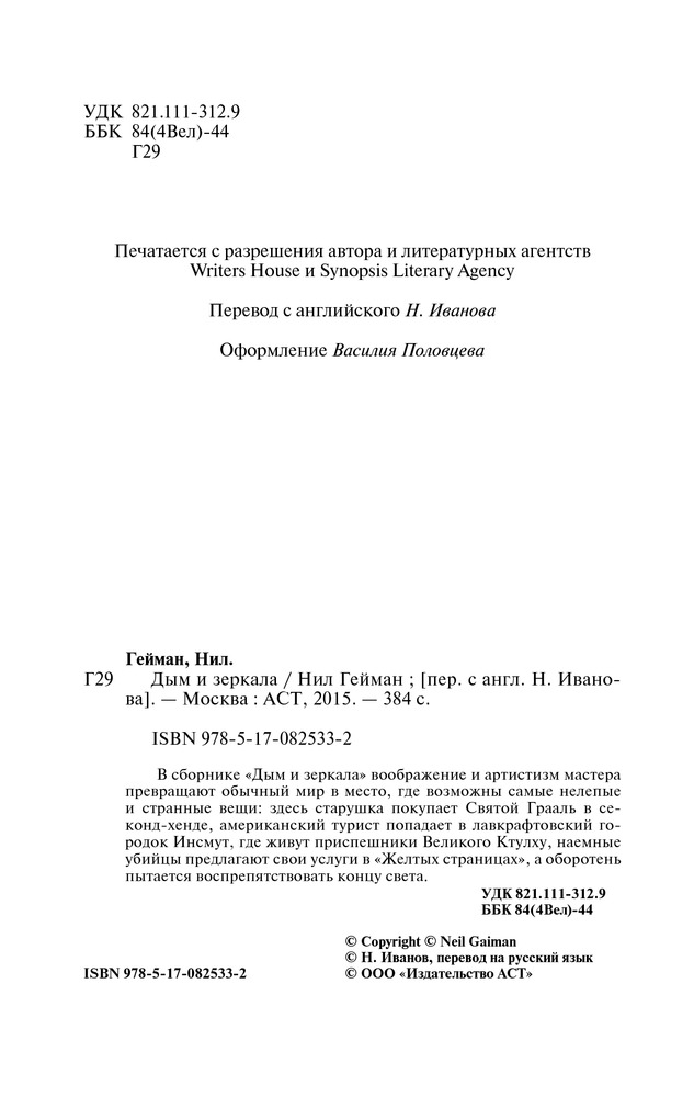 Дым и зеркалаВ данный момент этот товар отсутствует в продаже. Возможно, у нас найдется аналогичный или похожий товар здесь. В сборнике «Дым и зеркала» воображение и артистизм мастера превращают обычный мир в место, где возможны самые нелепые и странные вещи: здесь старушка покупает Святой Грааль в |