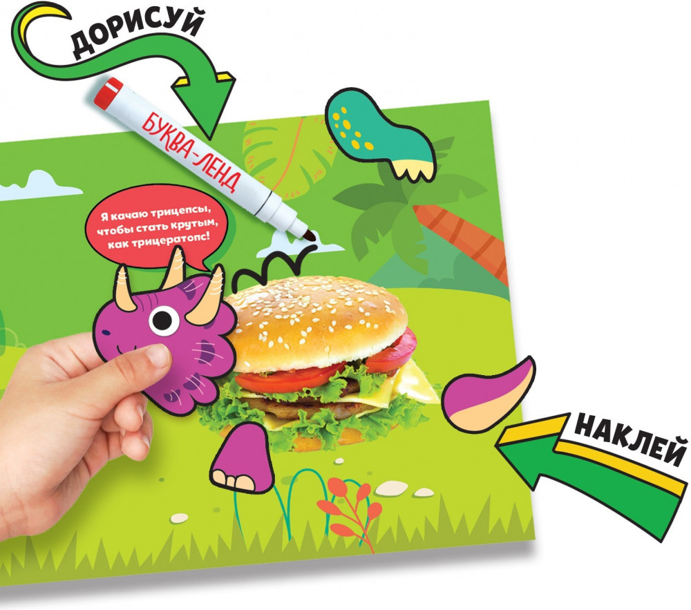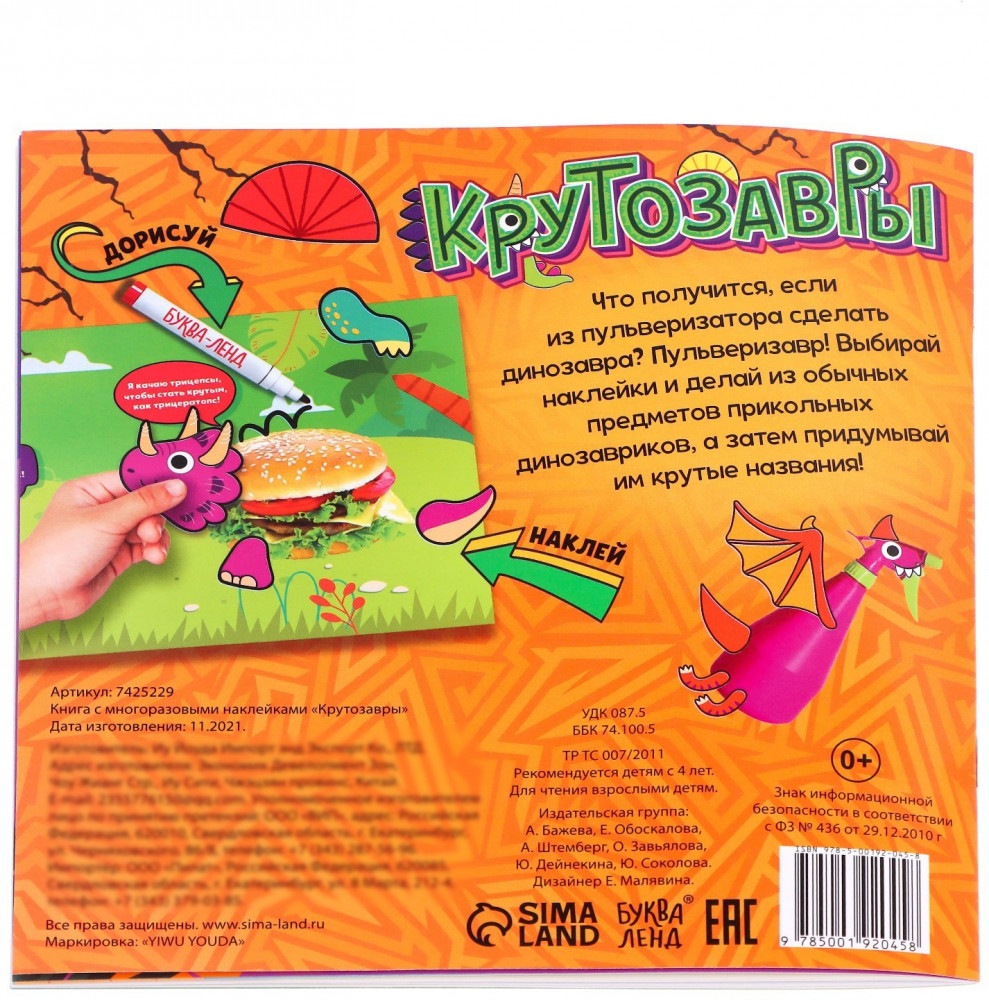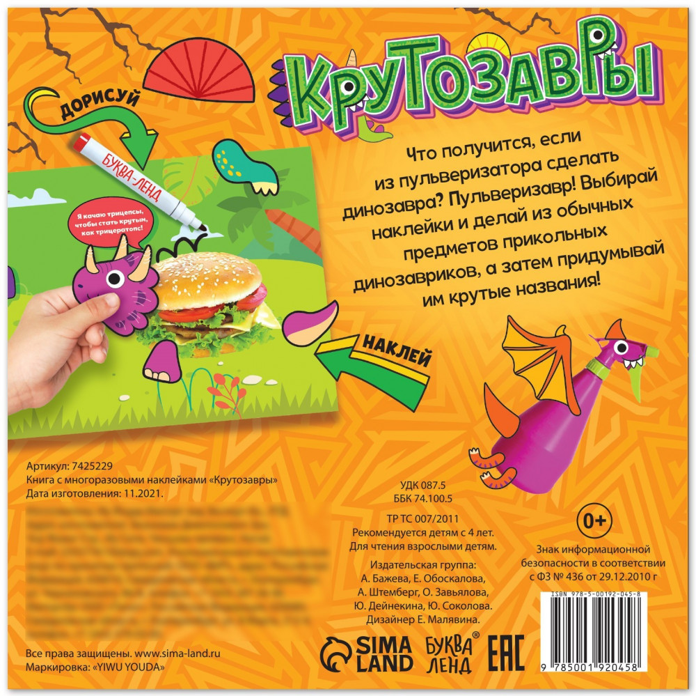 💳 Оплатить за товар можно при получении 🇰🇿 Есть бесплатная доставка по Казахстану от 1 дня 🎁 Копите бонусы с каждой покупки Серия: Аппликации наклейками Что получится, если из пульверизатора сделать динозавра? Пульверизавр! Вместе с ребёнком выбирайте наклейки, делайте из обычных предметов прикольных динозавриков и придумывайте им крутые названия! |