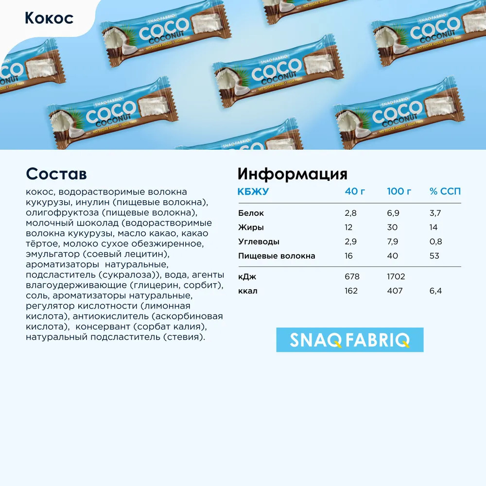 Snaq Fabriq Набор батончиков глазированных «Кокос»