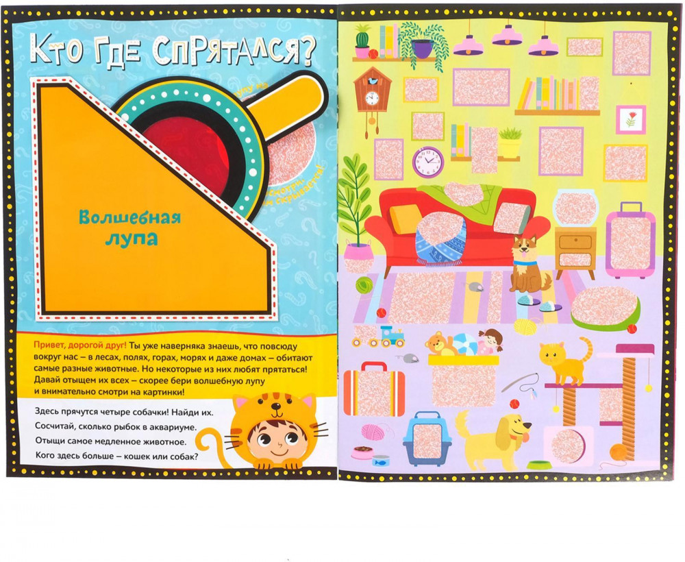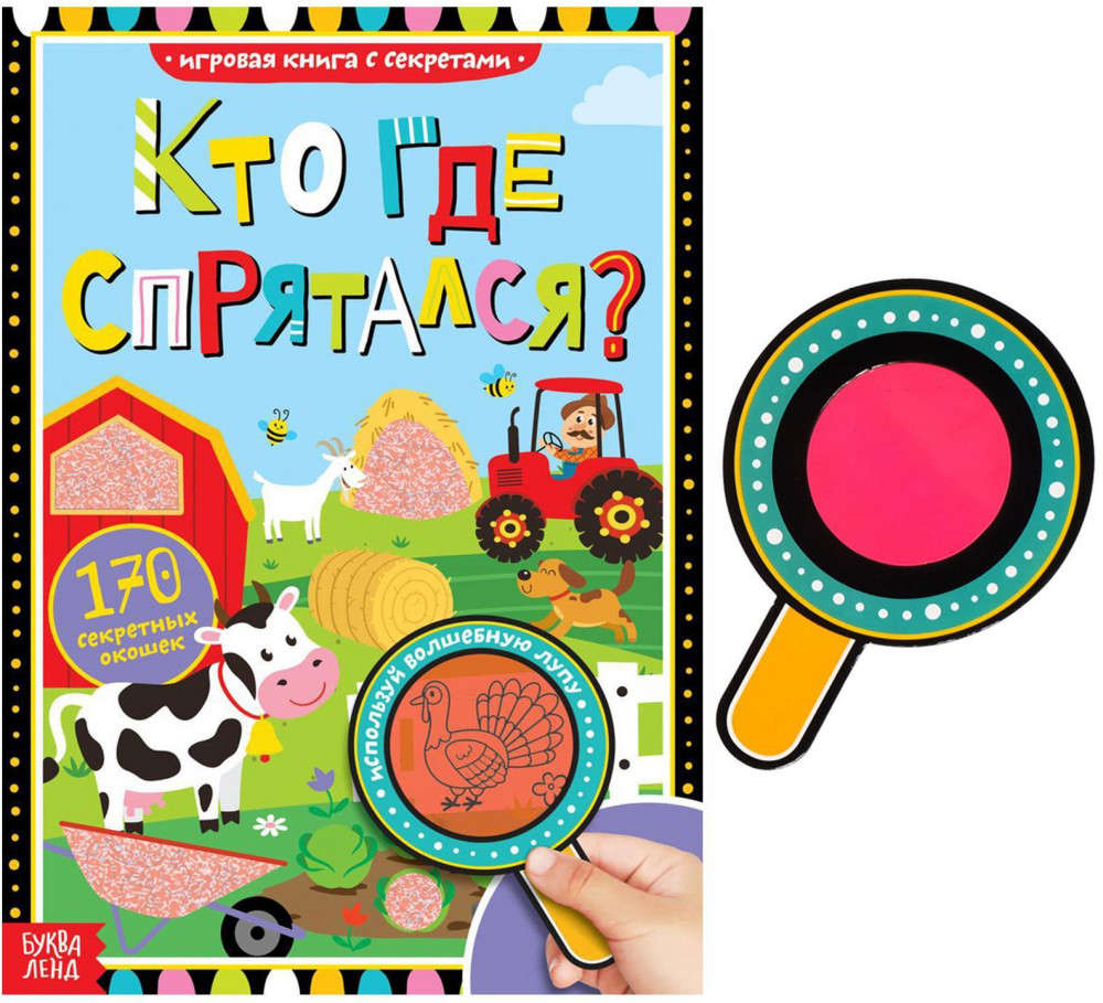 Серия: Книги с секретами Книга с секретами «Кто где спрятался» содержит целых 170 секретных окошек. Внутри малыш найдёт увлекательные задания, которые помогут ему потренировать внимательность, память и счёт. Ребёнку предстоит сыграть в прятки с озорными зверушками — они попрятались на страницах этой книги. Чтобы отыскать их, нужно лишь навести на картинку волшебную лупу. Рекомендовано для детей от 4 лет. |