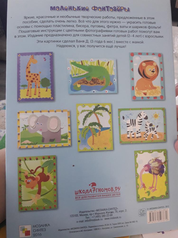 Ребенок в восторге от всей серии маленькие фантазеры. Рекомендую. Отлично можно провести время с ребенком делая поделки из пластилина гофрированной бумаги пуговиц крупы и т.д.