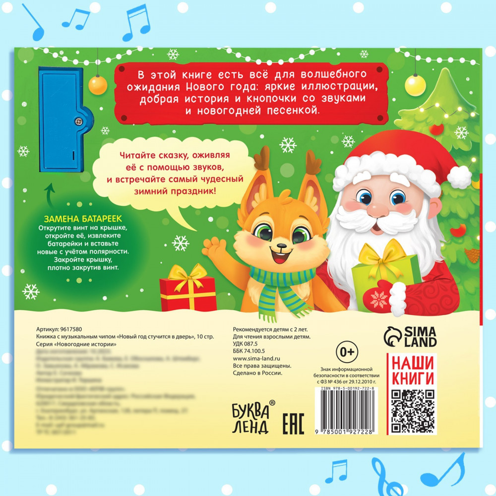 Новый год стучится в дверь. Книжка с музыкальным чипомВ данный момент этот товар отсутствует в продаже. Возможно, у нас найдется аналогичный или похожий товар здесь. Серия: Новогодние книги Буква-Ленд Прочитайте добрую новогоднюю сказку и оживите её с помощью волшебных звуков! В книжке есть 5 музыкальных кнопочек, на которые вы будете нажимать вместе с малышом и слушать звуки. В тексте вы найдёте специальные обозначения, которые подскажут, какую кнопку когда нажимать. Мини-сказка подойдёт в качестве подарка или приятного сюрприза для малыша. Пусть ожидание праздника станет самым сказочным и волшебным! |