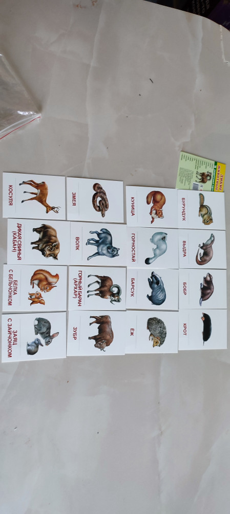 Отличный карточки: маленькие, удобные, с чёткими реалистичными картинками. Очень радуют надписи на русском и английском языках.