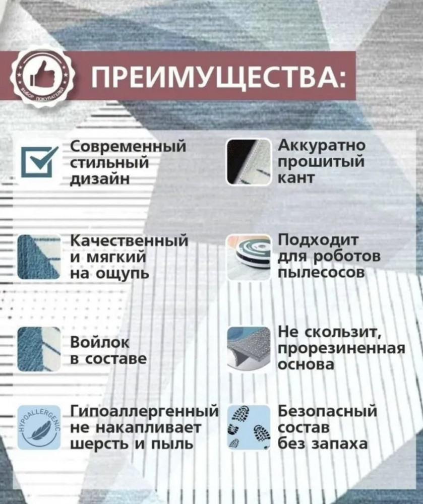 Ковер из микрофибрыВ данный момент этот товар отсутствует в продаже. Возможно, у нас найдется аналогичный или похожий товар здесь. Ковер безворсовый на пол подходящий под любой стиль и интерьер, просто создан для Вашего дома! Оригинальная расцветка ковра с антискользящим покрытием отлично впишется в любое помещение: гостиную, спальню, детскую комнату. |