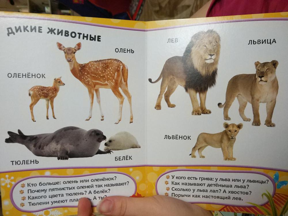 Любимая книжка племянниц))) Сейчас мелкая чуток подросла, теперь она сморит, да и старшая 4 года, но все равно ей нравится. Картинки большие, четкие, реально передающие вид животного.