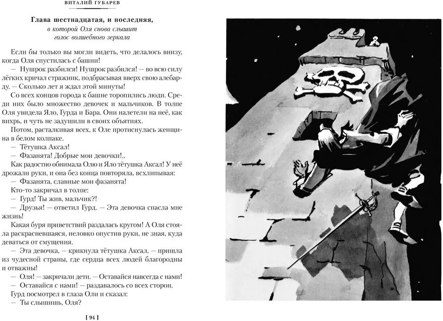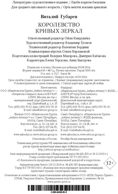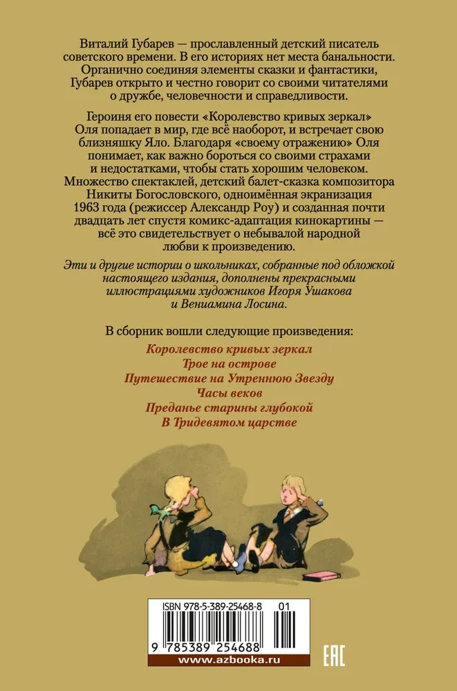 💳 Оплатить за товар можно при получении 🇰🇿 Есть бесплатная доставка по Казахстану от 1 дня 🎁 Копите бонусы с каждой покупки Серия: Детская библиотека. Большие книги Оля — обычная девочка, вот только до жути непослушная, рассеянная и ленивая. Рано вставать в школу или класть вещи на место — не для неё. Оля не замечала в себе недостатков, пока не познакомилась со своим отражением по имени Яло. Внешне Яло — точная копия Оли, в остальном же полная её противоположность: смелая, прилежная и внимательная. Волшебным образом девочки попадают в Королевство кривых зеркал, где крошка хлеба кажется целой булкой, глупцов называют мудрецами, а уродин считают настоящими красавицами — в общем, там всё наоборот. Чтобы вернуться домой, Оле вместе с Яло предстоит пережить много опасных приключений, вызволить из темницы зеркальщика Гурда, а также одолеть невежественного короля Топседа и его жестокого министра Нушрока, которые уже долгое время угнетают простой народ. В настоящий сборник также вошли и другие не менее увлекательные истории Виталия Губарева о дружбе, не знающей границ, невероятных космических путешествиях и волшебстве, которое может произойти с каждым. |