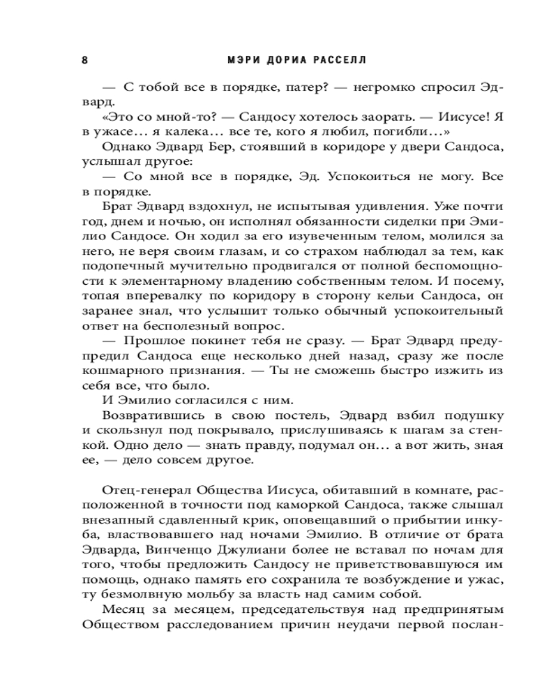 💳 Оплатить за товар можно при получении 🇰🇿 Есть бесплатная доставка по Казахстану от 1 дня 🎁 Копите бонусы с каждой покупки Серия: Fanzon. Sci-Fi Universe. Большой покет с клапанами Отец Эмилио Сандос, единственный выживший и вернувшийся на Землю участник первой межзвездной экспедиции на планету Ракхат, постепенно приходит в себя от пережитых испытаний. Общество иезуитов готовит вторую миссию на альфу Центавра, и ему нужна помощь Сандоса в подготовке. Отца Эмилио ждут старые друзья и новые открытия. Ему предстоит решить сложные вопросы о своем месте во Вселенной, границы которой уже вышли за пределы Солнечной системы. У Сандоса нет возможности сбежать от прошлого, но есть шанс изменить будущее. А будущее теперь — за детьми, которые рождены в далеком космосе. |