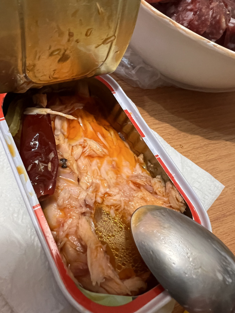Ультрамарин Филе тунца в масле с перцем чиливкусный пикантный целый перчик любителям острого повторный заказ малый объём В данный момент этот товар отсутствует в продаже. Возможно, у нас найдется аналогичный или похожий товар здесь. Филе тунца в масле с перцем чили — это изумительно вкусный дуэт мягкого нежного мяса и яркой остринки. Этот пикантный деликатес не оставит равнодушным ни одного гурмана. Закуску можно употреблять в чистом виде, добавлять к гарнирам, использовать для сэндвичей и салатов. Благодаря удобной упаковке с ключом-кольцом консервированный продукт легко и быстро открывается. |