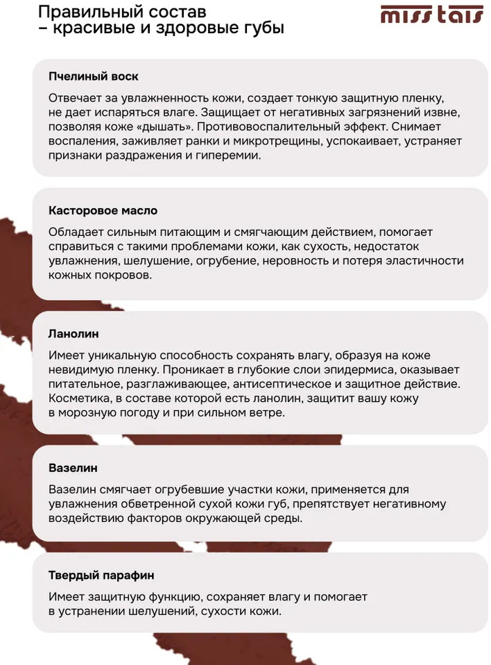 больше похож на парафин, плохо очерчивает края губ , приходится проходить по несколько раз, чтобы образовалась линия