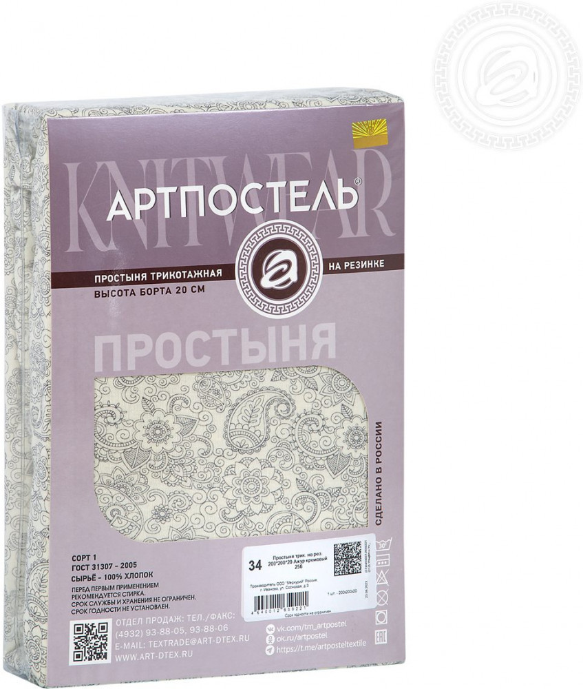 АртПостель Простыня на резинке «Ажур кремовый»