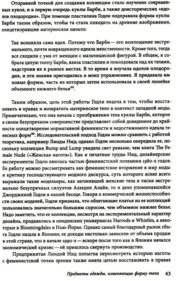 Экспериментальная мода. Искусство перформанса, карнавал и гротескное телоВ данный момент этот товар отсутствует в продаже. Возможно, у нас найдется аналогичный или похожий товар здесь. Серия: Библиотека журнала «Теория Моды» Как проявляются гротеск и карнавал в моде? Как мода связана с искусством перформанса? Может ли экспериментальная мода стать мейнстримом? Книга Франчески Гранаты посвящена провокативным и эксцентричным явлениям, которые уводят далеко от привычных представлений не только о высокой моде, но и о теле. В центре внимания автора — творчество дизайнеров, которые вошли в историю моды смелыми экспериментами: Рей Кавакубо, Джорджина Годли, Мартин Маржела, Бернард Вильгельм, мастер перформансов Ли Бауэри. Всем им удалось сместить границы телесного, поколебать общепринятые представления об эталонном теле, абсолюте классического стиля, о феминности, о самой топографии тела. Исследуя феномен гротескного тела, оказавшегося в центре экспериментов модельеров конца XX века, автор опирается на теорию гротеска, разработанную М.М. Бахтиным. Явления смещения, деконструкции, поиск латентных смыслов телесного в сфере экспериментальной моды рассмотрены сквозь призму идей 3. Фрейда, Ж. Деррида, М. Фуко и других интеллектуалов. Вошедшие в книгу интервью автора с участниками необычных перформансов и творцами экспериментальной моды — вдовой Ли Бауэри, Джорджиной Годли — погружают читателя в период 1980-х годов, развертывают широкую панораму идей, тенденций, которые во многом определили современное отношение к телесности и моде. Франческа Граната — PhD, доцент Школы дизайна Парсонс (Нью-Йорк). |