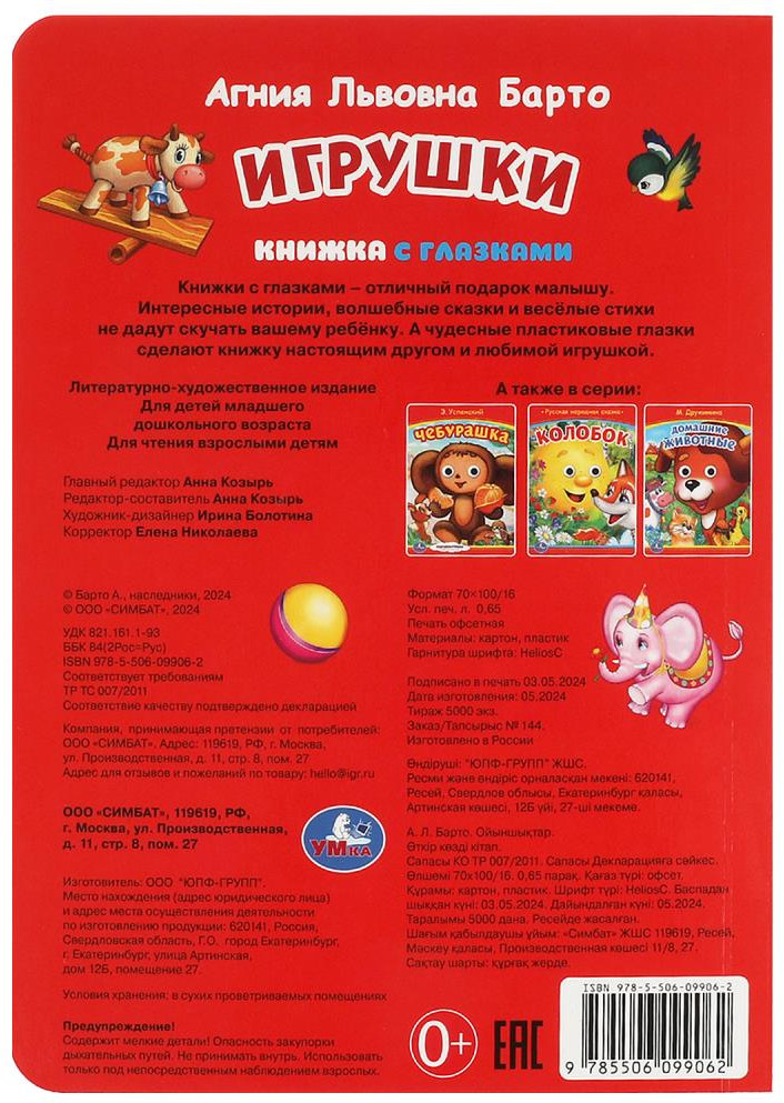 💳 Оплатить за товар можно при получении 🇰🇿 Есть бесплатная доставка по Казахстану от 1 дня 🎁 Копите бонусы с каждой покупки Книжка с глазками «А. Барто. Игрушки» ТМ «УМка» непременно понравится малышу: |