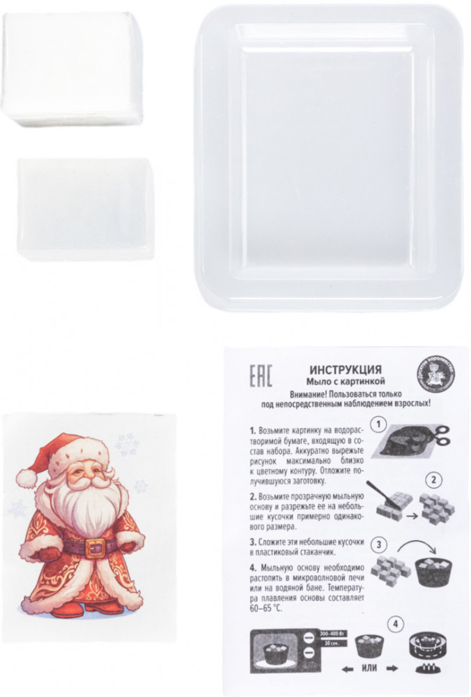 💳 Оплатить за товар можно при получении 🇰🇿 Есть бесплатная доставка по Казахстану от 1 дня 🎁 Копите бонусы с каждой покупки Набор для изготовления мыла «Дед Мороз» с картинкой — набор, с помощью которого ребенок изготовит оригинальный новогодний подарок своим друзьям или близким. Для этого потребуется внимание, ответственность и строгое соблюдение инструкции. Единственным ограничением является контроль и помощь со стороны взрослых при нагреве и манипуляциях с горячей мыльной основой. |