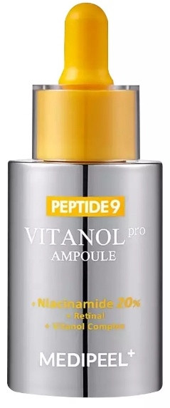 Лифтинг-ампула MediPeel Peptide 9 Vitanol Ampoule PRO осветляет пигментные пятна, выравнивает тон и рельеф, устраняет тусклость, придаёт здоровое сияние. Повышает упругость и эластичность, борется с первыми признаками возрастных изменений. Подходит для нормальной, комбинированной и жирной кожи.