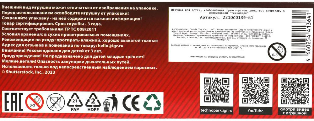 Технопарк Модель металлическая «Спорткар»-30% +51