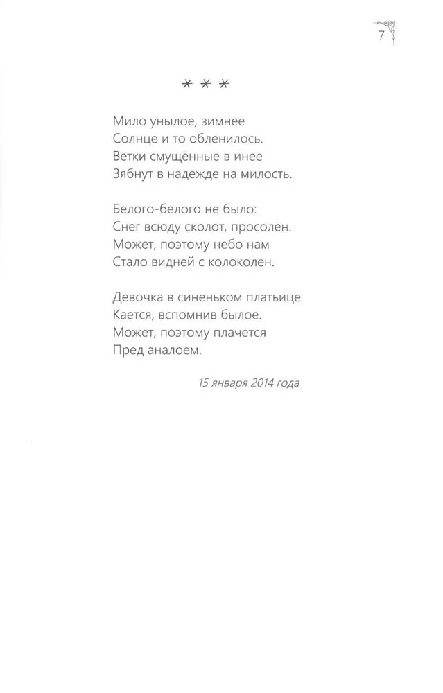 БрусникаВ данный момент этот товар отсутствует в продаже. Возможно, у нас найдется аналогичный или похожий товар здесь. Серия: Современная поэзия Собрание стихотворений Олъги Кутаниной — итог предыдущего десятилетия (2013–2023), устремлённого в будущие годы со жгучей надеждой на воскрешение мертвых — ту самую «встречу впереди». Как ни мал человек в череде грозных событий, как ни слаб он для того, чтобы влиять на ход времён, в нём ещё проступает не отменимое никакими пустыми декларациями взывание к Богу и в горе, и в счастье. Читателя ждёт встреча с поэтом, преданным не напускной, но пронизавшей всё его существо Верой. |