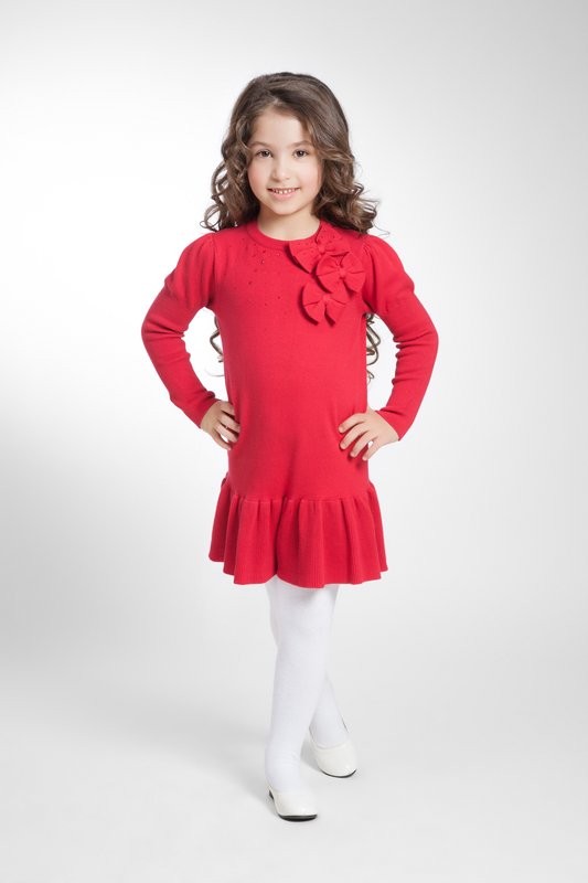 Хорошее вязаное платье. Цвет насыщенный. Заказывала 116 размер. Но пришлось отказаться так, как идет на пухленькую девочку. А так платье интересное.