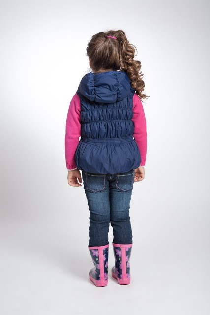 На рост 110 взяли 122, большим не выглядит. За счет резинок, которыми прошит весь жилет, плотно прилегает к телу. Для худеньких отличный жилет.