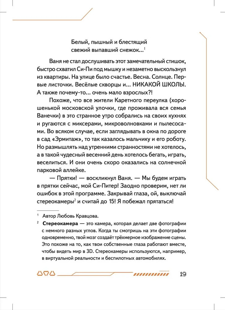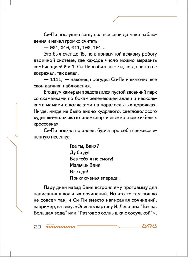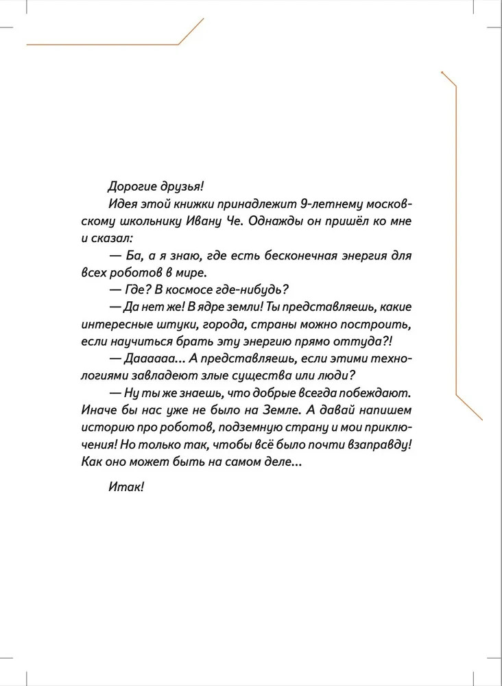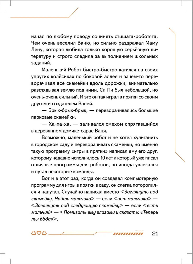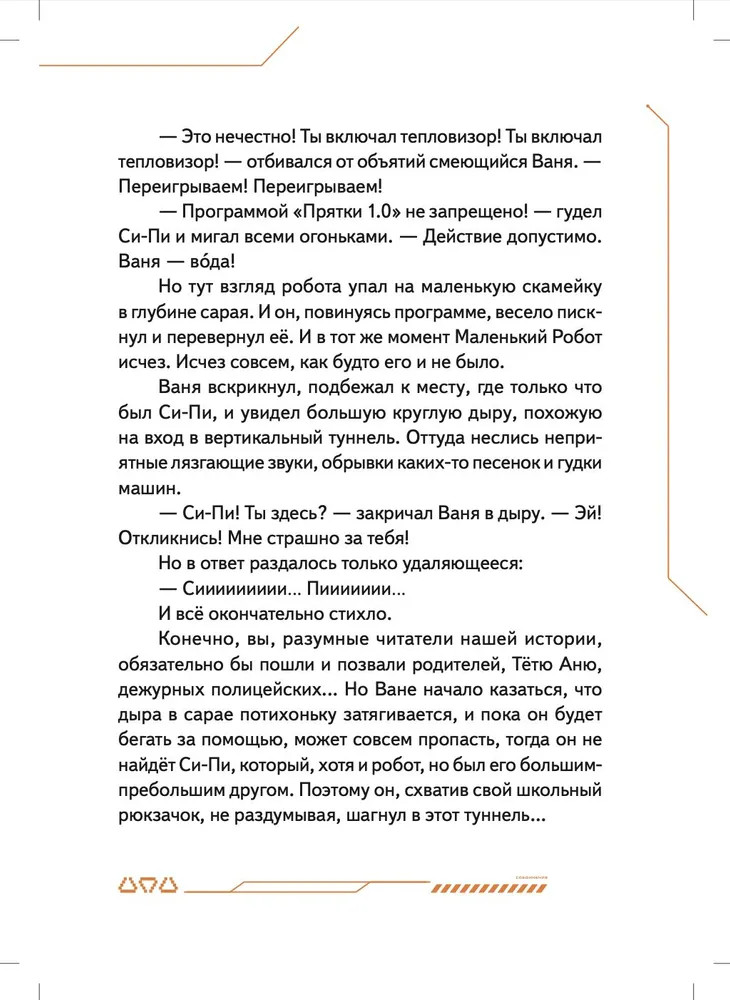 💳 Оплатить за товар можно при получении 🇰🇿 Есть бесплатная доставка по Казахстану от 1 дня 🎁 Копите бонусы с каждой покупки Серия: Вы и ваш ребенок Маленький робот Си-Пи сделан из обычных бытовых приборов мальчиком Ваней и его отцом, но внутри малыша-робота находится одна тайна. Именно она приводит Си-Пи и Ваню в секретную подземную страну Недрусь, населённую роботами и биоботами. С маленькими героями происходит череда головокружительных событий, которые начинаются с истории о разбившемся когда-то на Земле инопланетном корабле и угрозы существования всему человечеству. Судьба двух миров искусственных существ — Голубого и Красного — зависят от того, хватит ли смелости и смекалки у московского мальчика Ивана Че и его маленького робота Си-Пи... Нейрокристаллы и сражение на плазменных мечах, конкурс стихов между носителями Искусственных Мозгов и первая любовь мальчика и девочки-биобота, будущее и настоящее человечества и ответ на вопрос, готов ли робот на самопожертвование, — всё это в новой книге Ольги Усковой, президента Российской компании по производству искусственных мозгов для роботов «Когнитив Пилот», и автора взрослых книжек-бестселлеров про искусственный интеллект «Этюды Черни» и «Раша». |