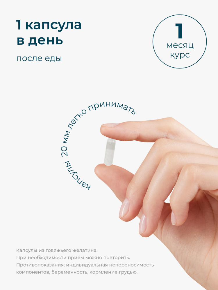 Рекомендации по применению: взрослым по 1 капсуле в день во время еды.