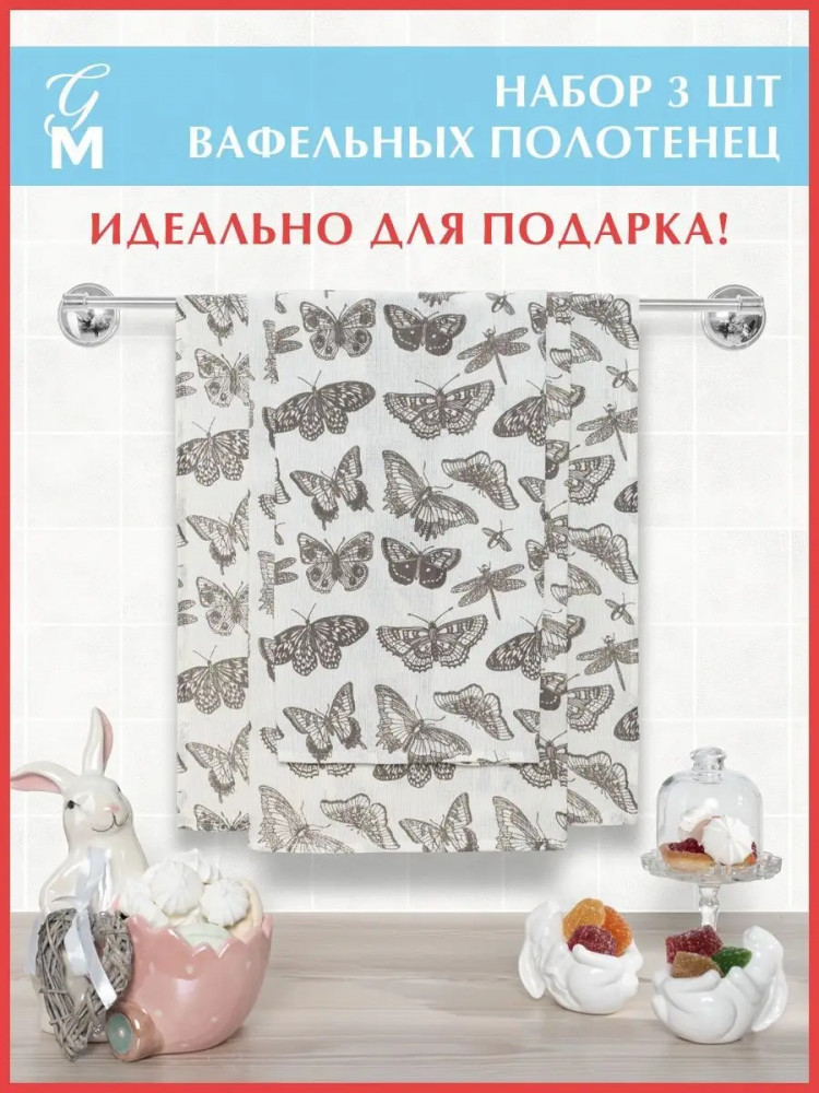 Guten Morgen Комплект полотенец вафельных «Бабочки»-25% +62
