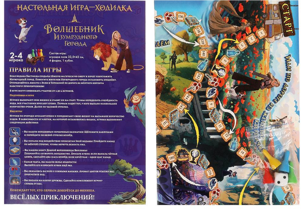 💳 Оплатить за товар можно при получении 🇰🇿 Есть бесплатная доставка по Казахстану 🎁 Копите бонусы с каждой покупки Настольная игра-ходилка в блистере «Волшебник Изумрудного города» ТМ «Умные игры» приглашает отправиться навстречу приключениям вместе с любимыми героями! |