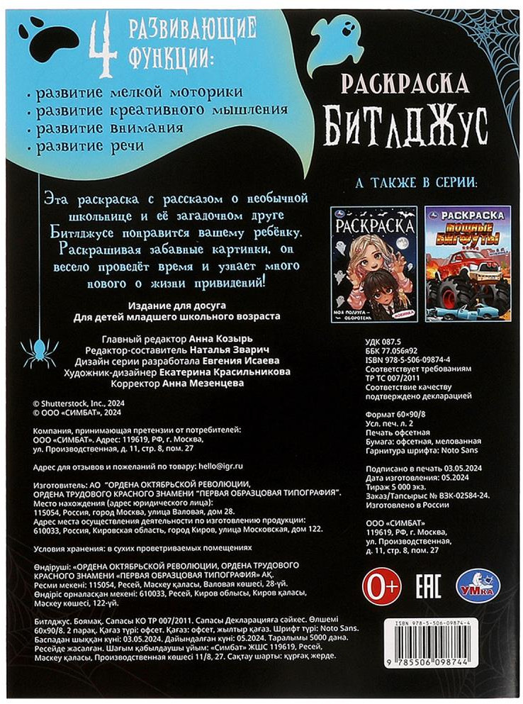 💳 Оплатить за товар можно при получении 🇰🇿 Есть бесплатная доставка по Казахстану от 1 дня 🎁 Копите бонусы с каждой покупки Раскраска «Битлджус» ТМ «УМка» — отличный подарок для юных художников: |