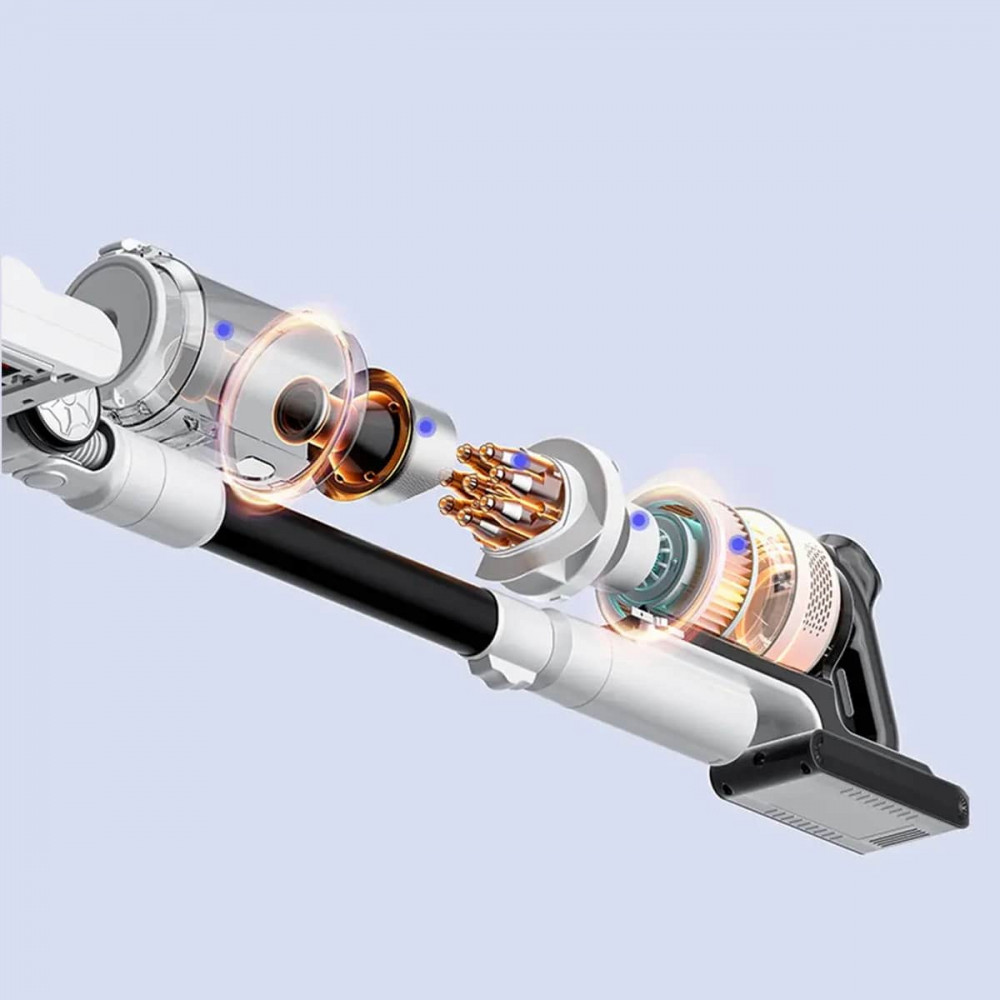Пылесос имеет автоматическую выемку пыли, длительное время работы от аккумулятора и автоматическую очистительную станцию. Устройство оснащено LED-дисплеем, телескопической трубой с возможностью удлинения и сокращения, насадкой мопом, УФ-освещенной турбо-насадкой и LED-освещенной насадкой. Также имеется держатель для аксессуаров, и пылесос может работать до 60 минут с автоматической регулировкой мощности в режиме AUTO. Фильтры включают в себя: центробежное разделение, металлическую сетчатую фильтрацию, разделение на 8 конусов, входной и выходной НЕРА-фильтр Н13.