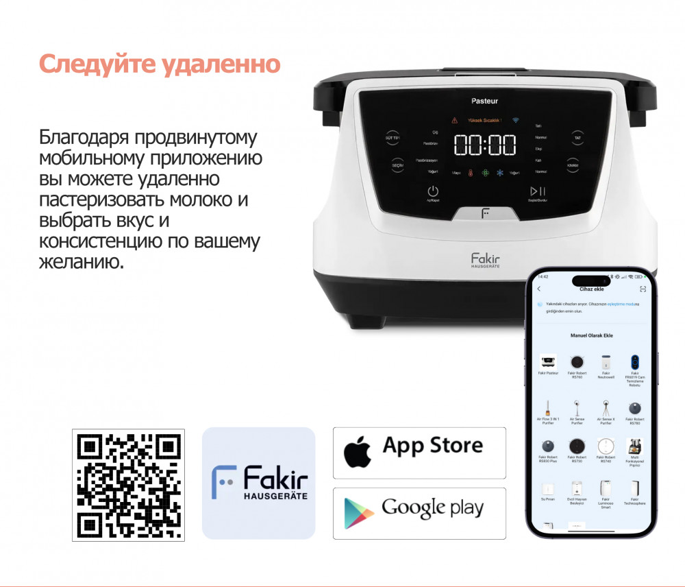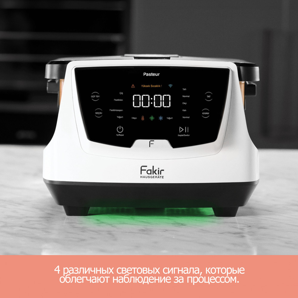 Fakir Hausgeräte Йогуртница «Pasteur»В данный момент этот товар отсутствует в продаже. Возможно, у нас найдется аналогичный или похожий товар здесь. Йогуртница с уникальной технологией и индивидуальным дизайном позволяет пастеризовать и приготовить йогурт непосредственно из сырого молока. Регулируйте вкус и консистенцию по своему усмотрению. Устройство оснащено большой чашей с керамическим покрытием объемом 3 литра и простым в использовании сенсорным экраном. Светодиодные индикаторы облегчают мониторинг процесса. Функция приложения позволяет легко использовать устройство и осуществлять дистанционное управление. |