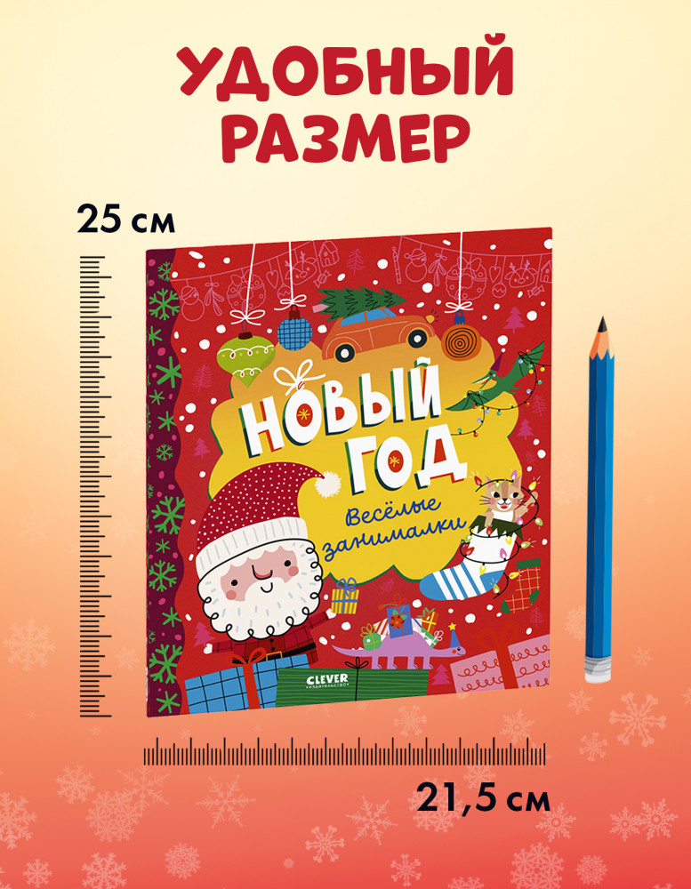Новый год. Весёлые занималкиВ данный момент этот товар отсутствует в продаже. Возможно, у нас найдется аналогичный или похожий товар здесь. Серия: Clever-активити «Новый год. Веселые занималки» — большая книга-игра, на страницах которой ребенка ждут увлекательные задания: и раскраски, и лабиринты, и находилки и многие другие. Они не только развлекут малыша, но помогут развить его сообразительность, память, логику, внимание и творческие способности. |