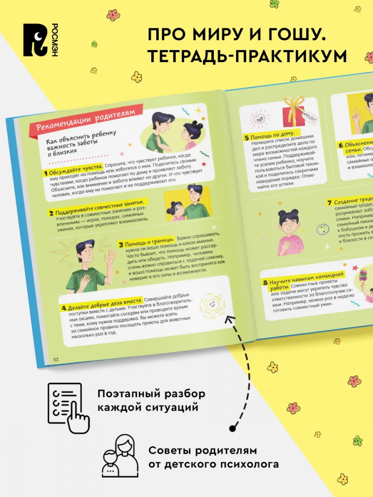 💳 Оплатить за товар можно при получении 🇰🇿 Есть бесплатная доставка по Казахстану 🎁 Копите бонусы с каждой покупки Серия: Про Миру и Гошу Тетрадь-практикум с веселыми заданиями и полезными историями про Миру и Гору от писательницы и продюсера Натальи Ремиш. Разбор ситуаций в формате комикса, рекомендации и подсказки для взрослых, советы детского семейного психолога. Издание станет отличным подарком детям от 5 лет, их родителям и всем поклонникам мультсериала. |