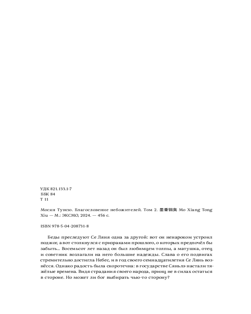 В данный момент этот товар отсутствует в продаже. Возможно, у нас найдется аналогичный или похожий товар здесь. Серия: Благословение небожителей Всё в этом мире имеет счёт: и удача, и невезение.