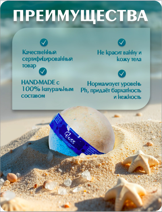 Kriger Бомбочка для ванн с морской солью «Gloss»
