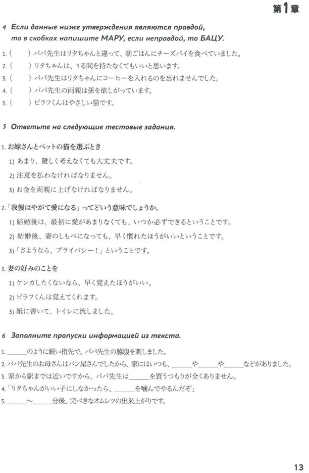 💳 Оплатить за товар можно при получении 🇰🇿 Есть бесплатная доставка по Казахстану 🎁 Копите бонусы с каждой покупки Серия: Домашнее чтение на японском Данный сборник рассказов содержит адаптированные тексты на японском языке, предназначенные для освоения на среднем уровне владения японским (примерно уровень 3 экзамена). Рассказы повествуют об отрезке из жизни несчастного преподавателя японского языка Папы-сэнсэя и его семьи в юмористическо-сатирическом ключе. Каждая глава снабжена словарем и упражнениями, которые позволят применять данный сборник как на занятиях в аудитории, так и в качестве материала для домашнего чтения. Упражнения снабжены иллюстрациями, а тексты глав вычитаны, проверены и исправлены носителем. |
