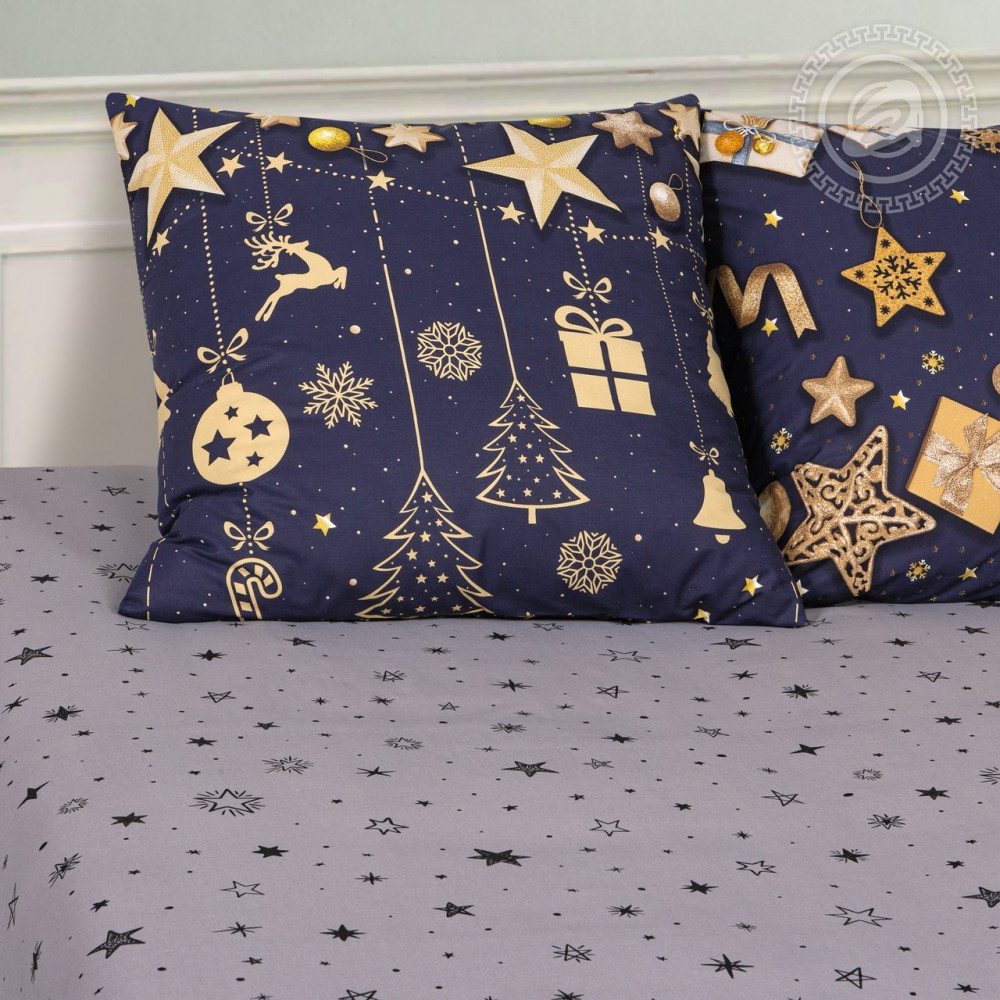 АртПостель Комплект постельного белья «Заветное желание»В данный момент этот товар отсутствует в продаже. Возможно, у нас найдется аналогичный или похожий товар здесь. Серия: De Luxe Комплект из поплина «Заветное желание» — шикарный дуэт темно-синего и золотого, который подойдет оригинальным и смелым натурам. Удивительное сочетание контрастных цветов выглядит стильно, экстравагантно, элитно. «Царская» палитра с рисунком в виде золотых звездочек, шаров, подарков, снежинок создаст в спальне атмосферу волшебства, чудес и настоящего праздника. «Заветное желание» — новогодний хит. |