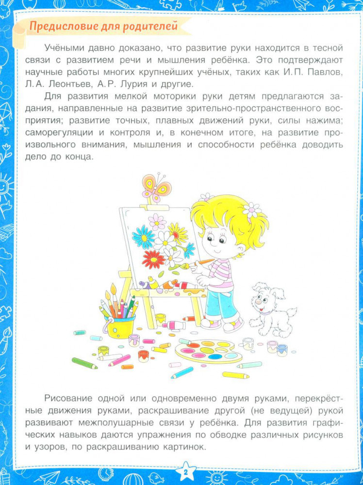 💳 Оплатить за товар можно при получении 🇰🇿 Есть бесплатная доставка по Казахстану 🎁 Копите бонусы с каждой покупки Серия: Готовимся к школе Уважаемые родители! Вы наверняка знаете, что развитие руки у ребёнка находится в тесной связи с развитием речи и мышления. Рисование одной или одновременно двумя руками, перекрёстные движения руками, раскрашивание другой (не ведущей) рукой развивают межполушарные связи у ребёнка. В нашей книжке вы найдёте различные несложные задания, направленные на развитие зрительно-пространственного восприятия; развитие точных, плавных движений руки, силы нажима; саморегуляции и контроля, такие как раскрашивание и дорисовывание картинок, обводка контуров и узоров, прохождение лабиринтов. Кроме того, к каждому занятию даётся совет родителям о том, как развивать мелкую моторику ребёнка в повседневной жизни. |