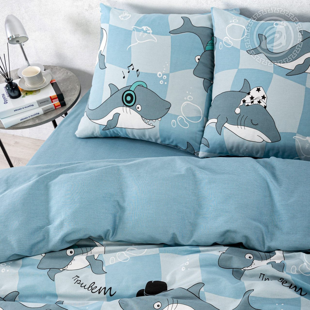 «Гавань» — хит коллекции! Постельное белье с акулами из бязи понравится и детям, и подросткам, и взрослым. Это актуальный принт на все времена и все сезоны. Он сочетает тренды и вызывает эмоции. На рисунке очаровательные акулы, которые притягивают взгляды. Среди героев модники, меломаны и сони. Все они забавные и очень милые. А дополняет принт узор в морской палитре. Модный комплект для комфорта и отдыха!