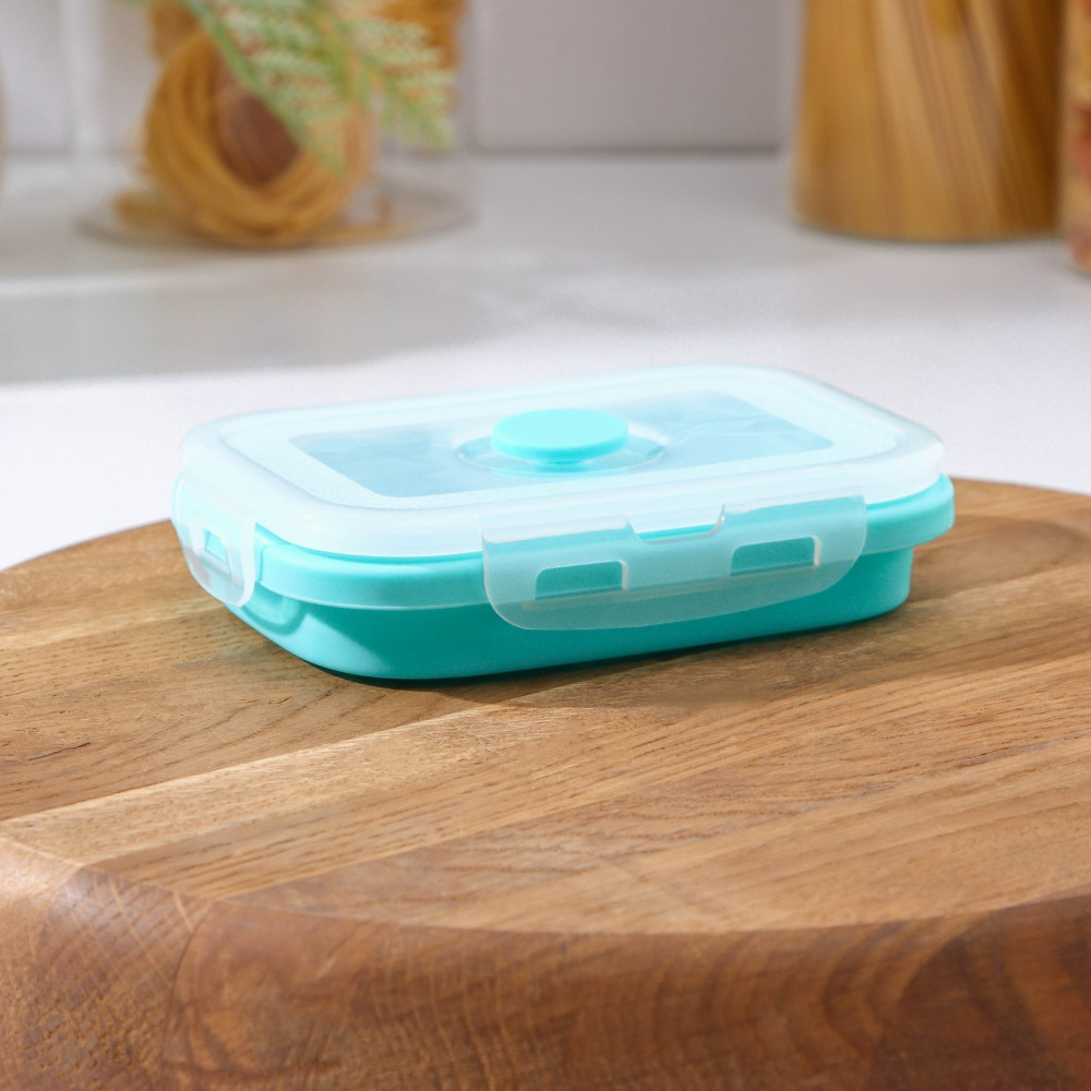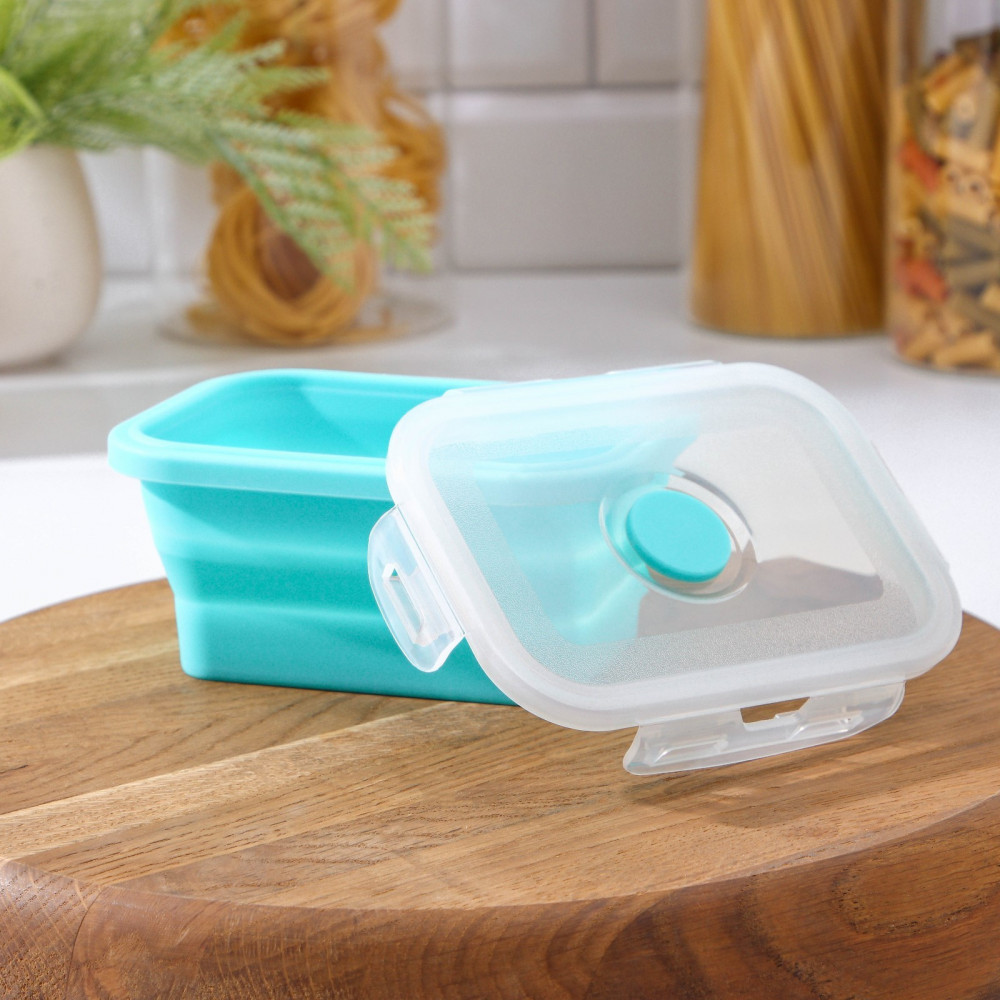 Силиконовый контейнер снабжён герметично закрывающейся пластиковой крышкой с прокладкой. Вы можете смело брать с собой на работу, в дорогу или на пикник разнообразную еду: