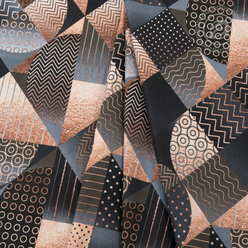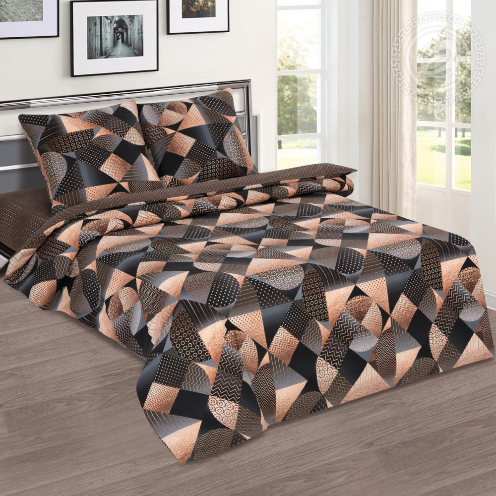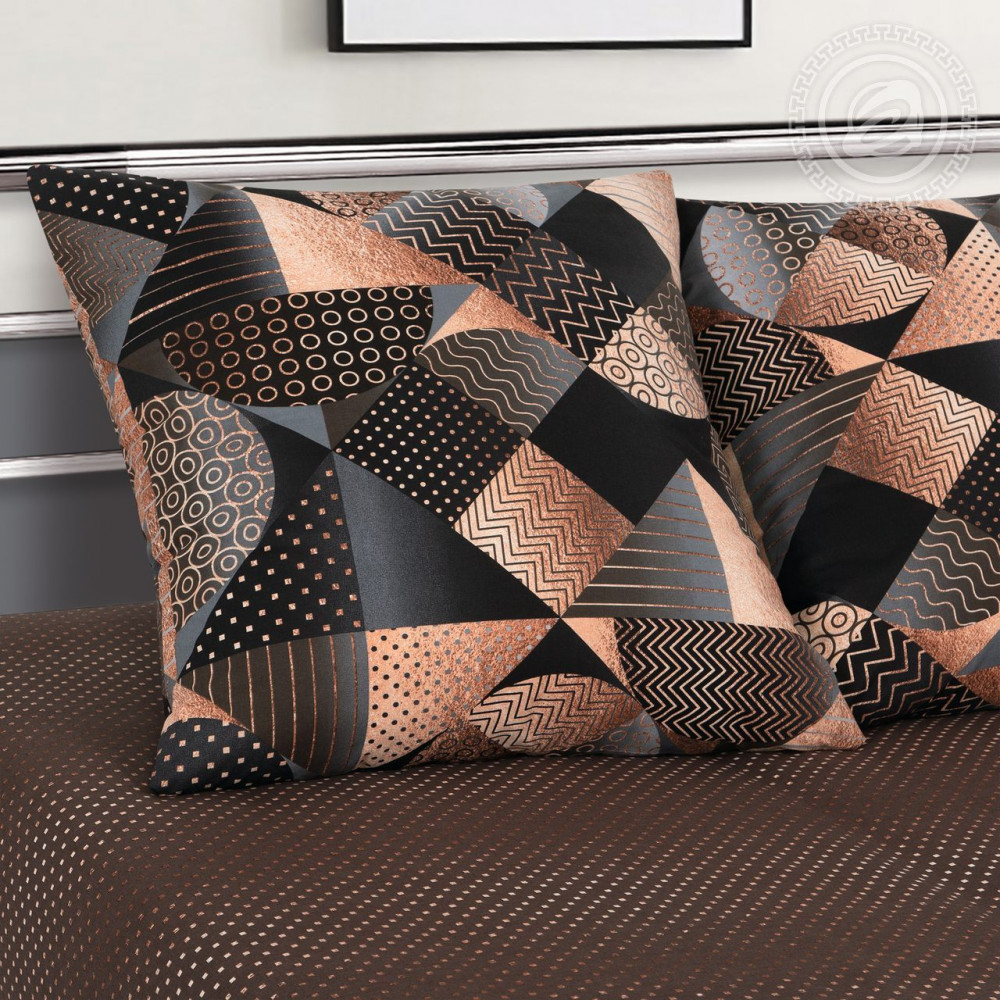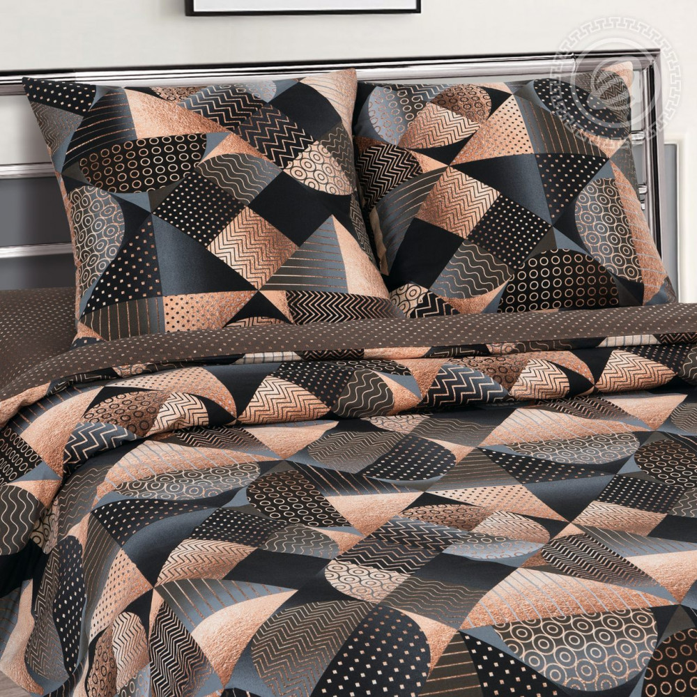Стильный принт «Неаполь» — чудесное напоминание о роскоши ар-деко с его смелой геометрией, необычными полутонами, глянцевым и ослепительным блеском. В палитре комплекта присутствуют золотые, шоколадные и темные оттенки, которые прекрасно сочетаются между собой. Композиция состоит из ромбов, линий, зигзагов и полукругов. Постельное белье с рисунком «Неаполь» — олицетворение изысканности, богатства и королевского шика.