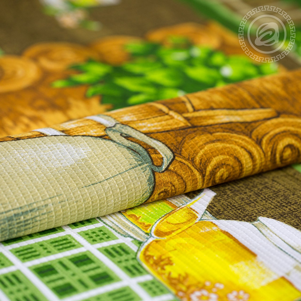 Настоящее вафельное полотенце. Рисунок яркий. Упаковка хорошая. Отличный небольшой подарок банщикам.