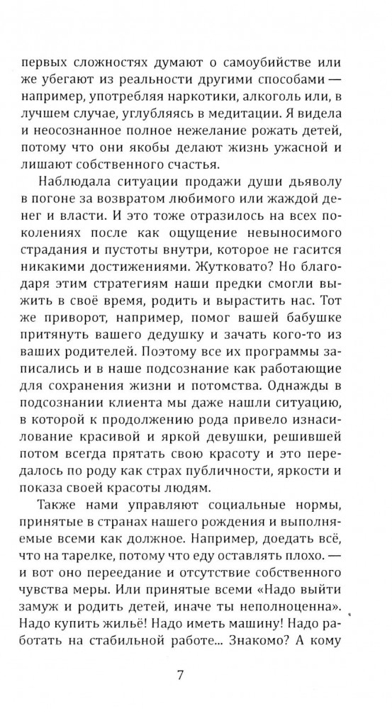 Это духовное руководство к осознанности, написанное простыми словами. Книга предназначена для тех, кто хочет научиться жить по-новому в условиях постоянно меняющейся реальности и не терять уверенности в себе. Она подходит для практикующих психологов, коучей и просто осознанных, сильных женщин, желающих понять бытие самостоятельно. Материал книги основан на личном опыте автора и более чем восьмилетней практике духовного наставничества. Прочитав книгу, вы найдёте ответы на следующие вопросы: «Как перестать бежать и начать жить? Почему ты всё тащишь на себе? Почему близкие не хотят меняться? Как освободить голову от плохих мыслей? Что такое настоящая Вера? Какие бывают внутренние опоры уверенности и как её можно сохранить, когда привычный мир рушится?» Для широкого круга читателей. |