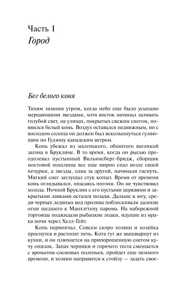 Потрясающая книга! Великолепный, фантастический красивый роман, пропитанный волшебством романтизма Нью-Йорк. Узкие улочки, высокие башни, детальное описание городских пейзажей, все это создает ощущение полного присутствия. Книгу важно понять, настроится на её волну. Кому-то поможет любимая музыка напоминающая Нью-Йорк, кому-то мягкий диван, теплый плед и что-нибудь вкусное. Для более полного представление советую посмотреть экранизацию по мотивам романа "Любовь сквозь время". Вместе они прекрасно друг-друга дополняют и зритель становится не только свидетелем, но и полноценным участником. Но, как и книга для обывателя не отягощенного фантазией, фильм остался незамеченным и непонятым. Очень жаль.