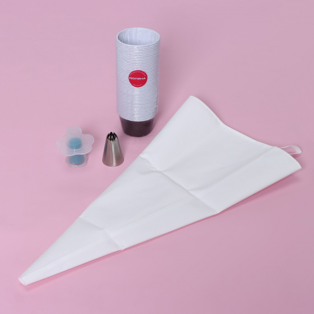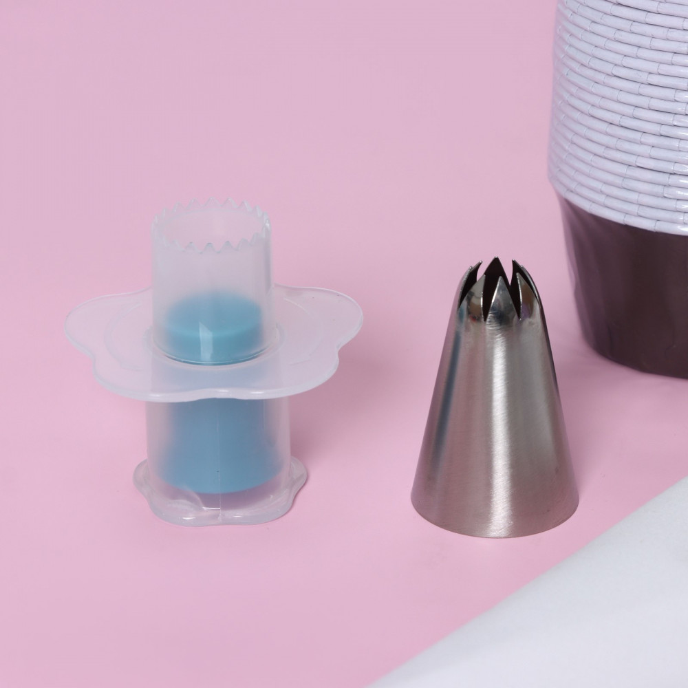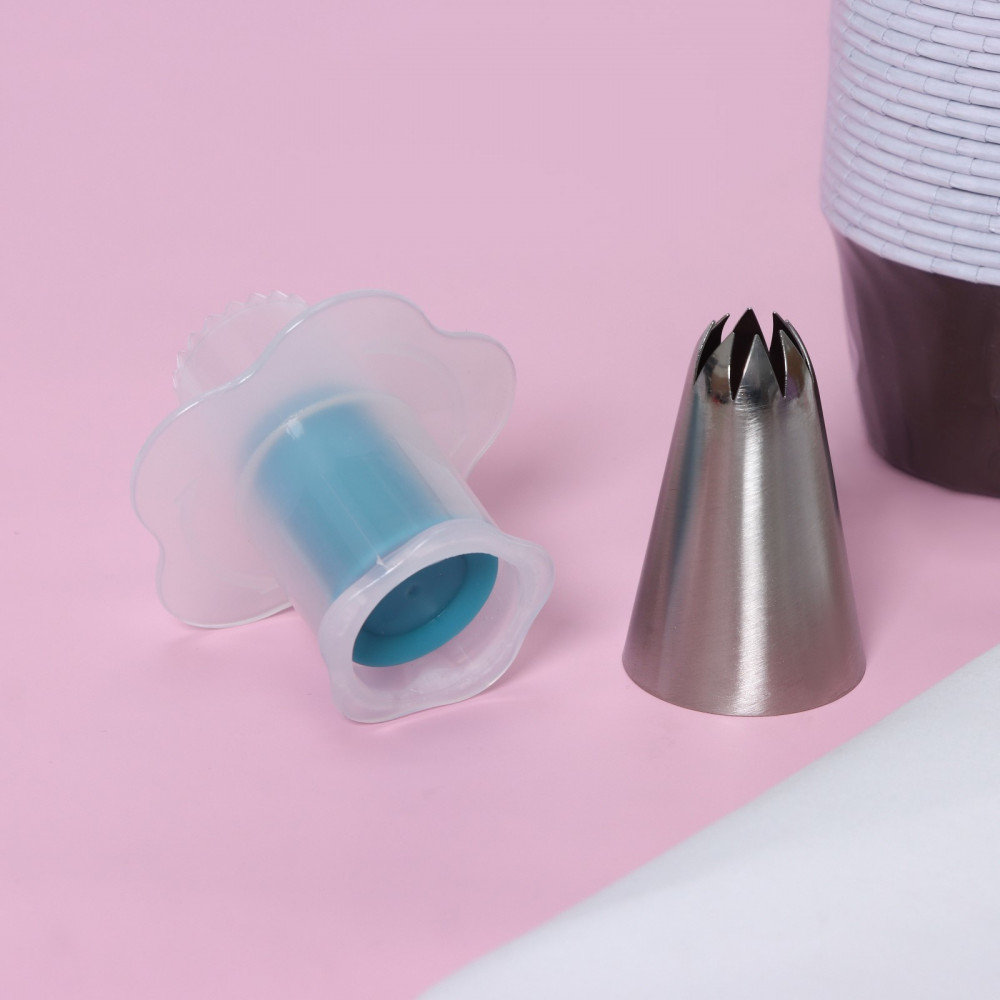 В набор входит также форма для выпечки, в наборе содержится целых 50 штук таких форм, чтобы у вас была возможность экспериментировать и создавать множество вариаций капкейков. Для удобства наносить крем на кексы, в набор входит мешок кондитерский. С помощью этого мешка вы сможете создавать красивые и аккуратные узоры на поверхности изделий. Мешок позволит вам точно контролировать поток крема и создавать разнообразные узоры, добавляя вашим десертам неповторимый вид. Насадка кондитерская «Закрытая звезда» — это еще один неотъемлемый элемент набора. С помощью этой насадки вы сможете создавать красивые звёздочки и узоры на капкейках, придавая им элегантный вид и добавляя неповторимый шарм.