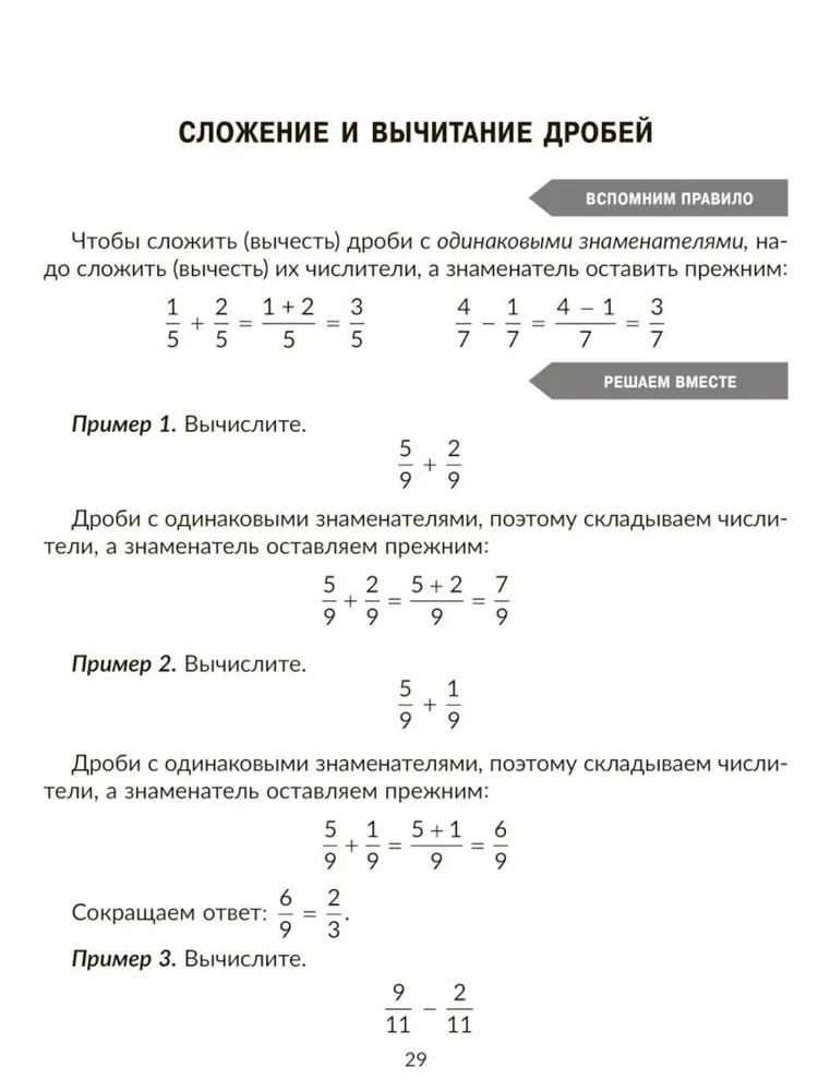 Отзывы «Тренажёр по математике. Действия с дробями. Повторяем правила, решаем примеры и задачи. 5 класс»