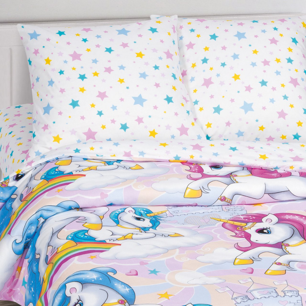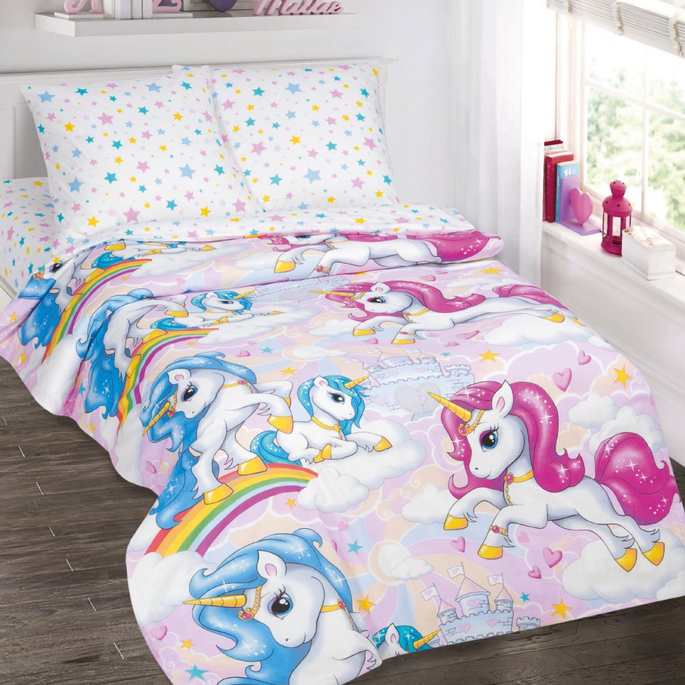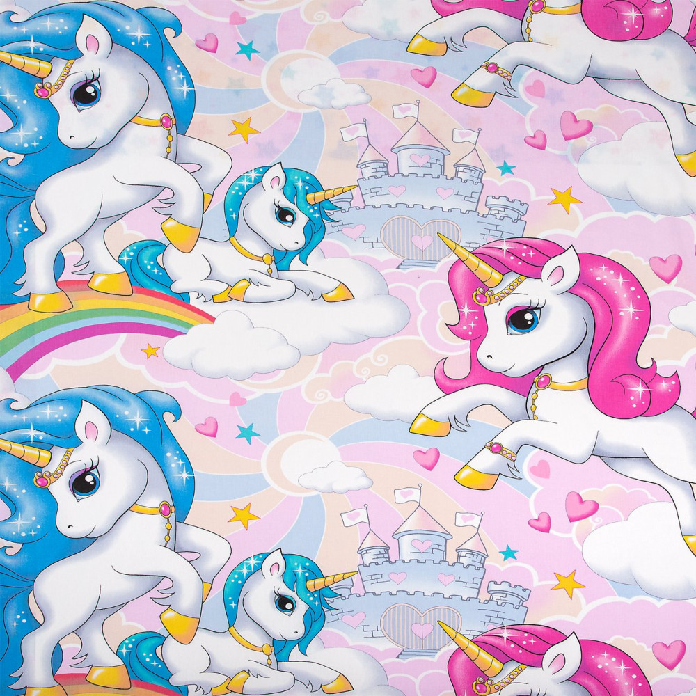 Специально для маленьких любителей отлично провести время был разработан новый рисунок на ткани под названием «Карусельки». Веселые лошадки с розовой и голубой гривой по радуге и облакам спешат добраться до замка, расположенного уже не так далеко. Маленькие розовые сердечки окружают их, будто вылетают из-под копыт. А солнце своими лучами подает сигнал о том, что пора торопиться навстречу новым приключениям!