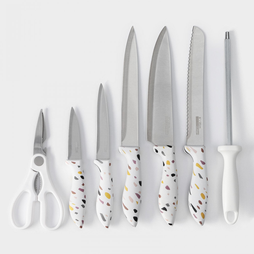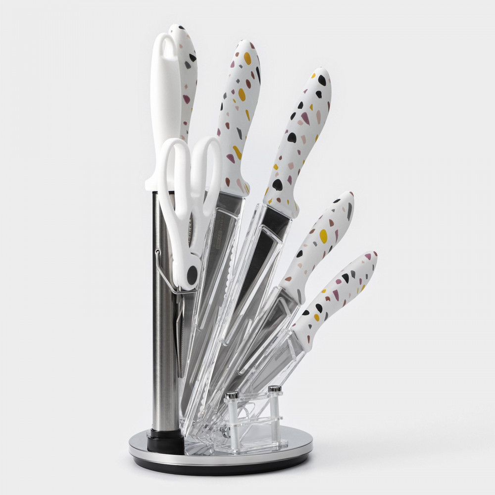 • высококачественная нержавеющая сталь: лезвия ножей изготовлены из прочной и долговечной нержавеющей стали, которая обеспечивает высокую прочность и устойчивость к коррозии. Благодаря этому, ваши ножи будут служить вам верой и правдой на протяжении многих лет;